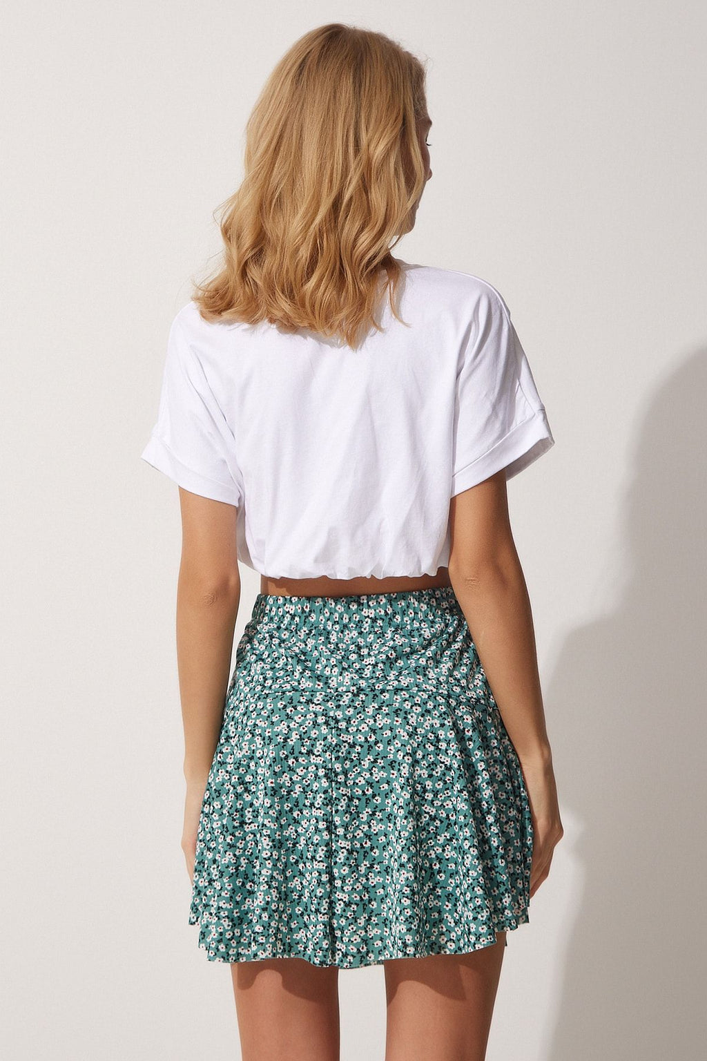 Women's Cagla Green Flower Patterned Mini Knitting Short Skirt CI00076
