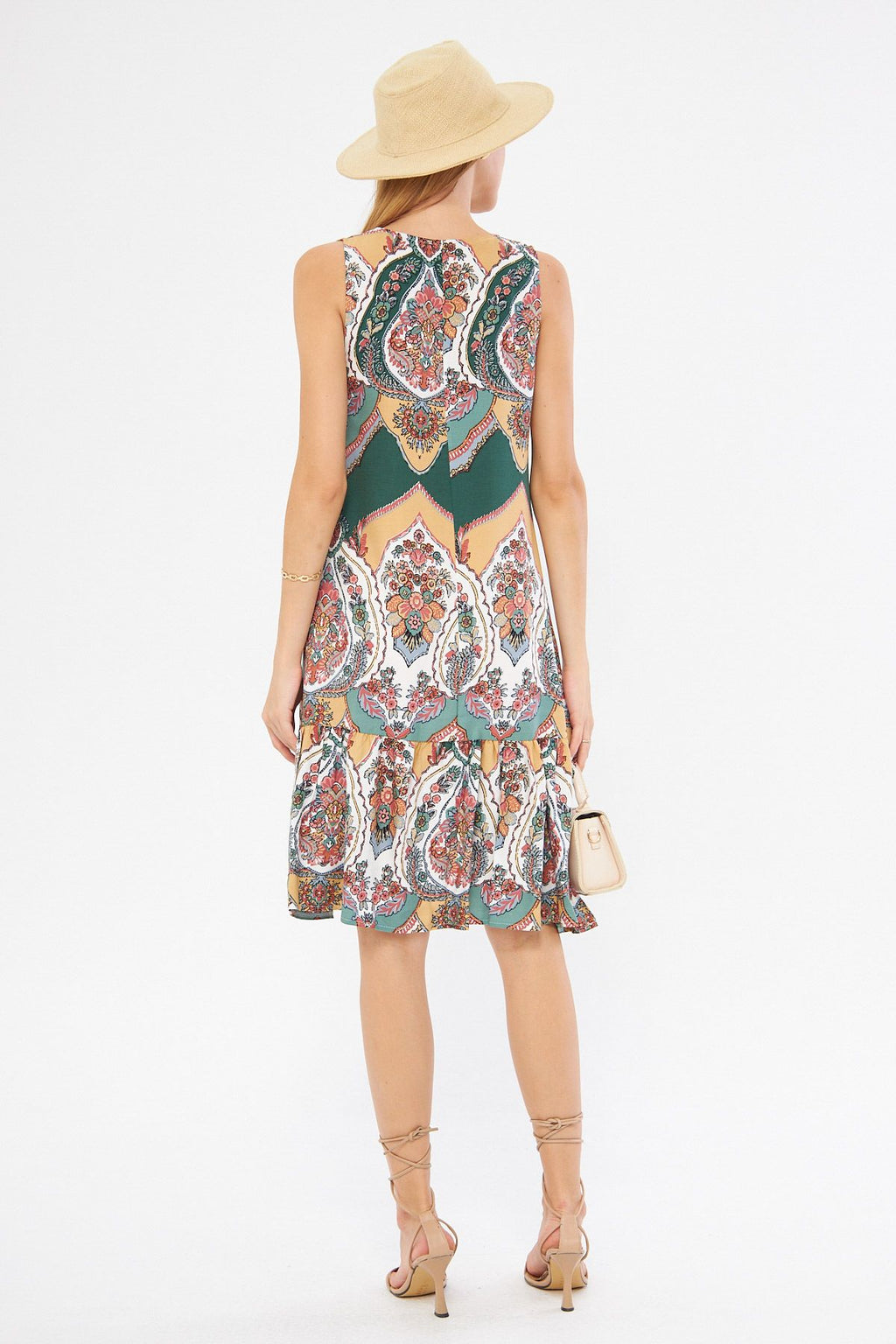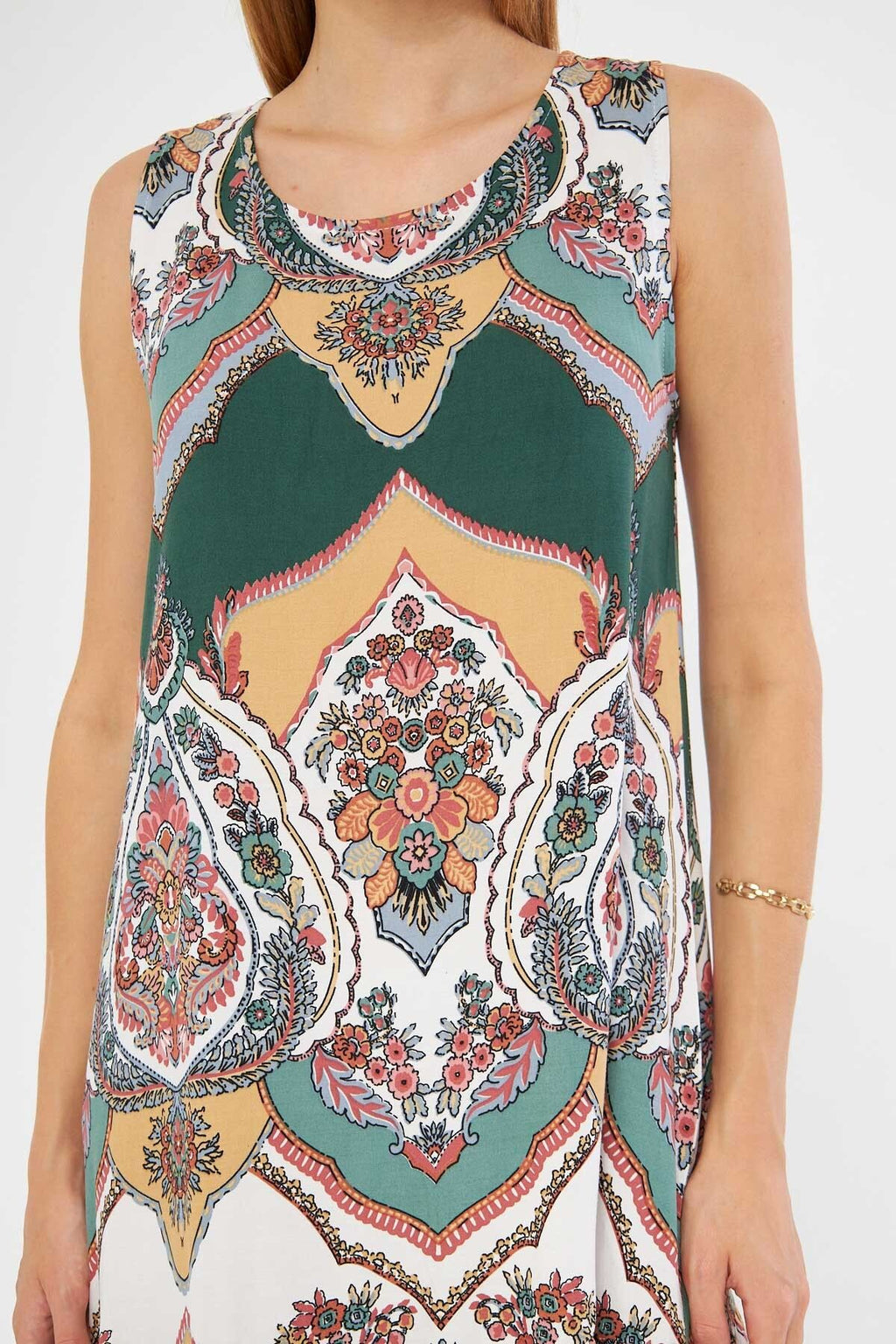 Women's Cagla Green Patterned Sleeveless Skirt Ruffle Dress ARM-22K001142