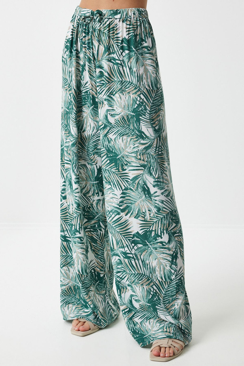 Women's Cagla Green Patterned Viscose Palazzo Pants EN00606