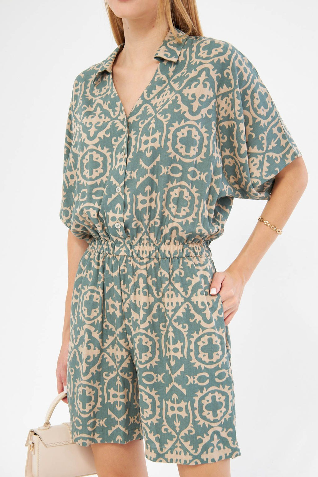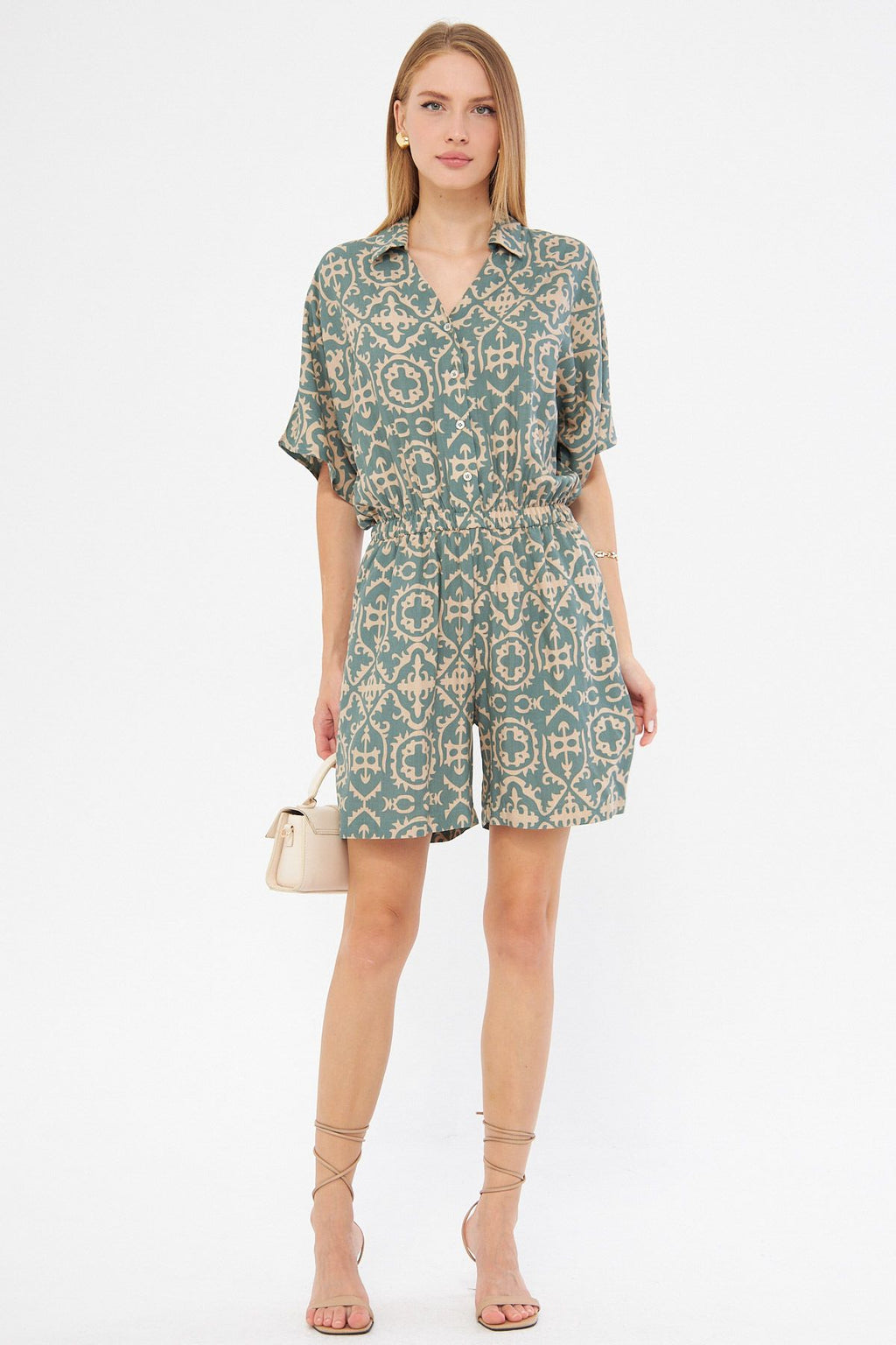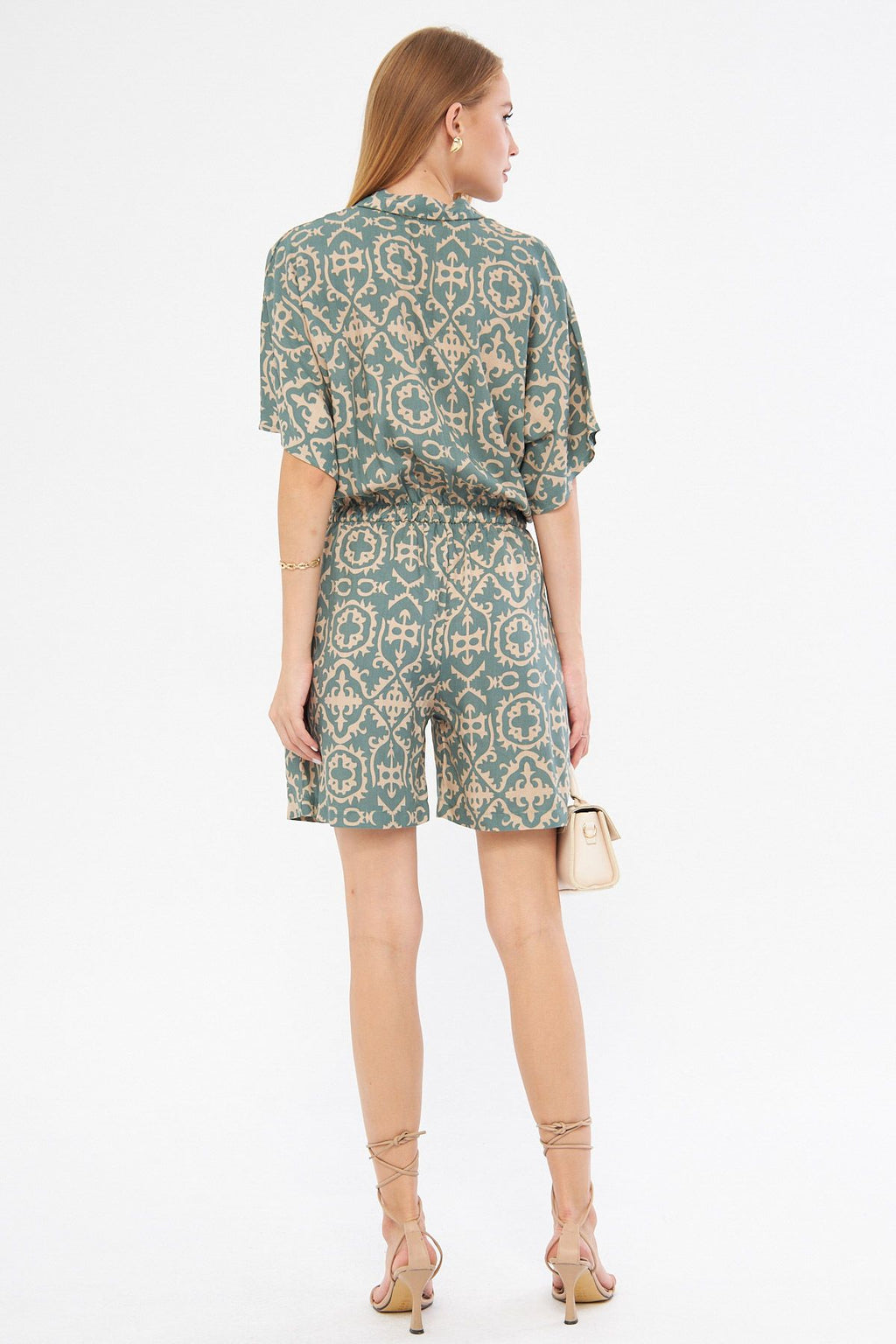 Women's Cagla Green Shirt Cep Patterned Short Tulum ARM-24Y001023