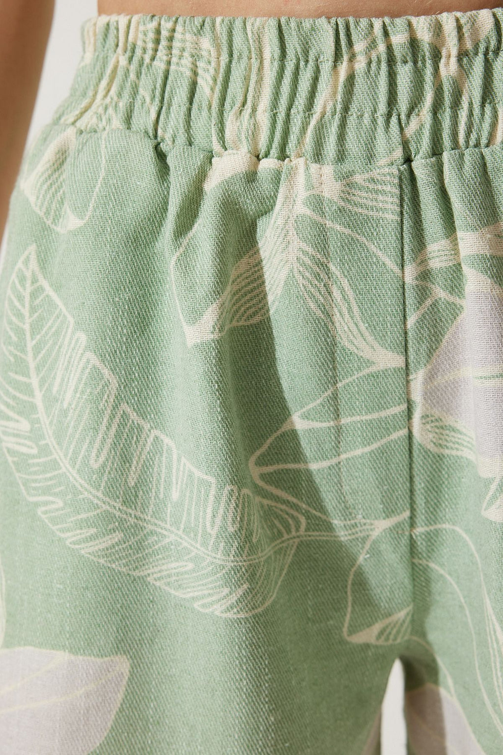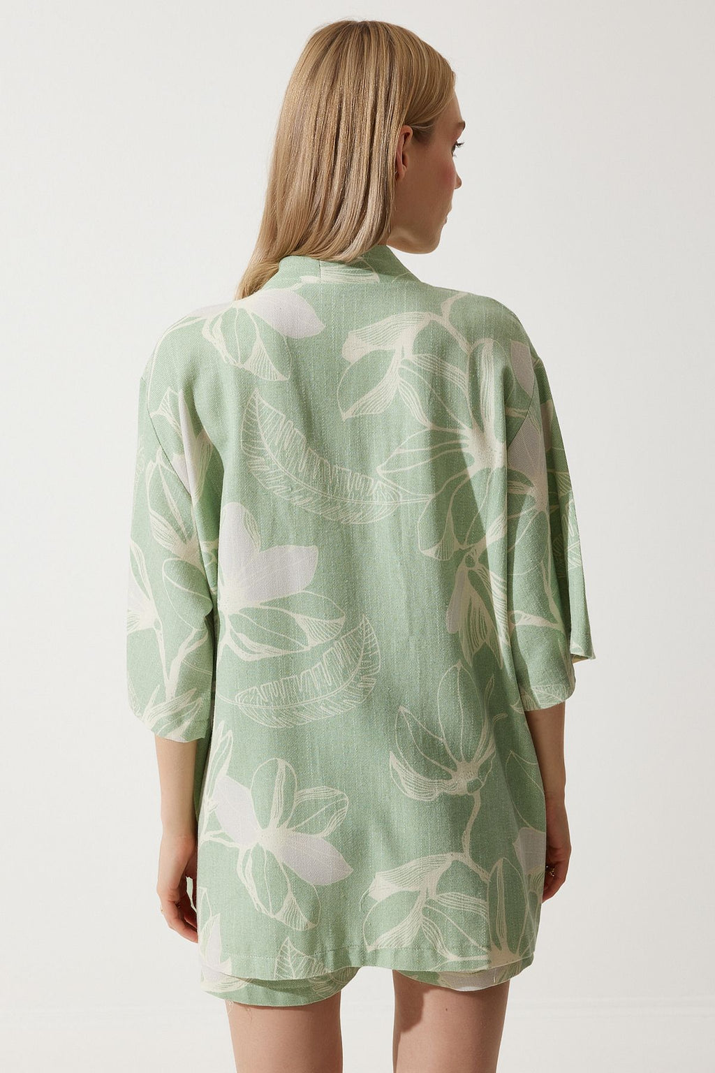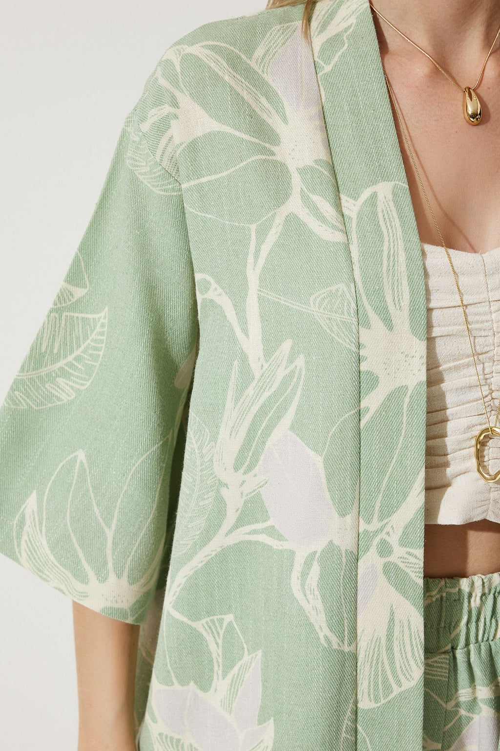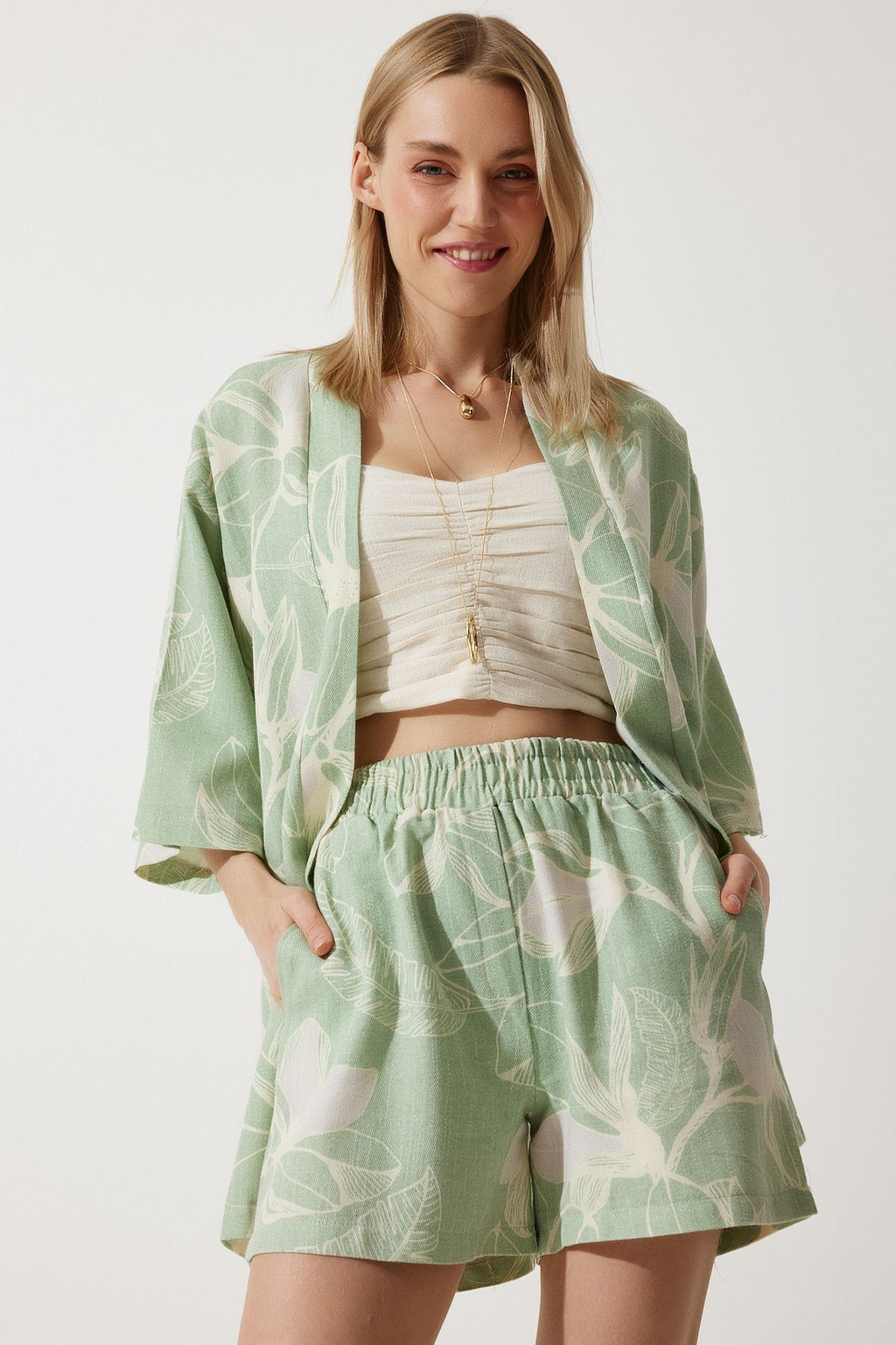 Women's Cagla Green Tropic Patterned Summer Ham Kimono Shorts BP00157