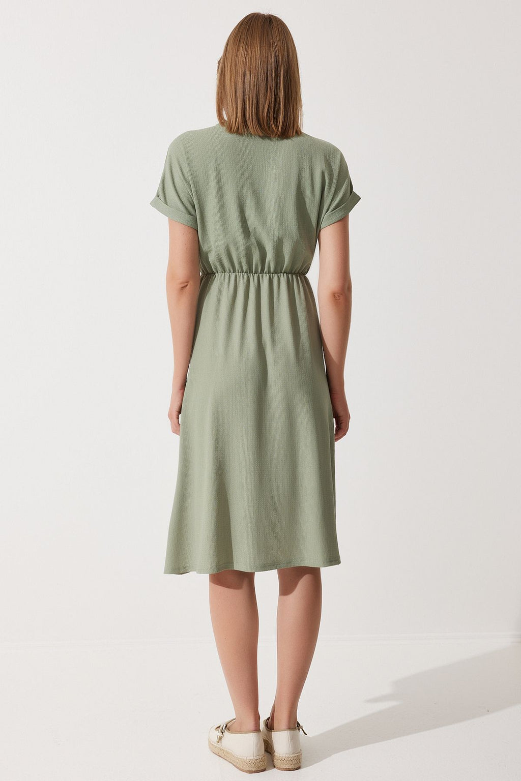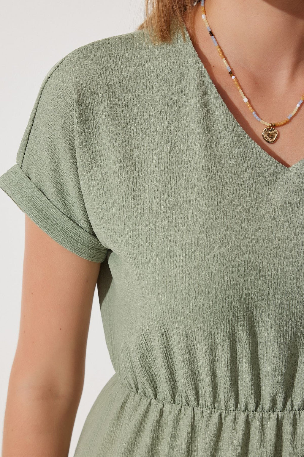 Women's Cagla Green V -Yaka Silled Summer Daily Knitting Dress DD01319