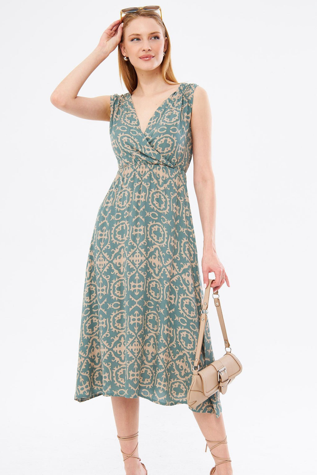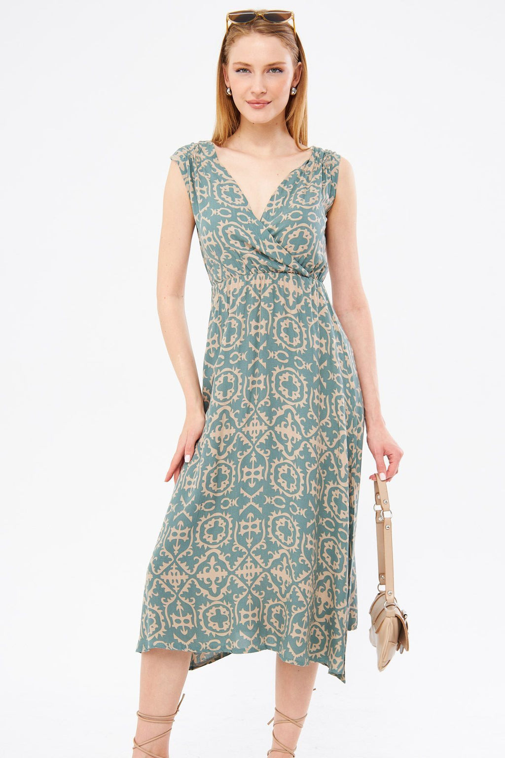 Women's Cagla Green Waist Waist Shoulder Cruve Cruve Midi Boy Skirt Dress ARM-24Y001052