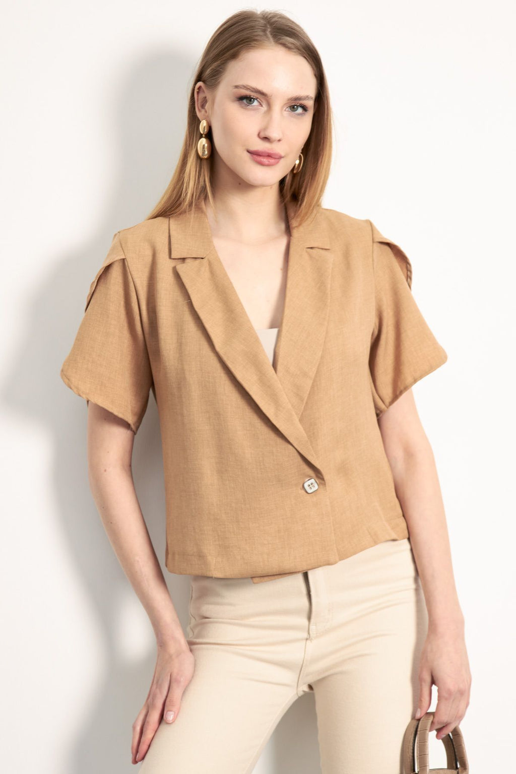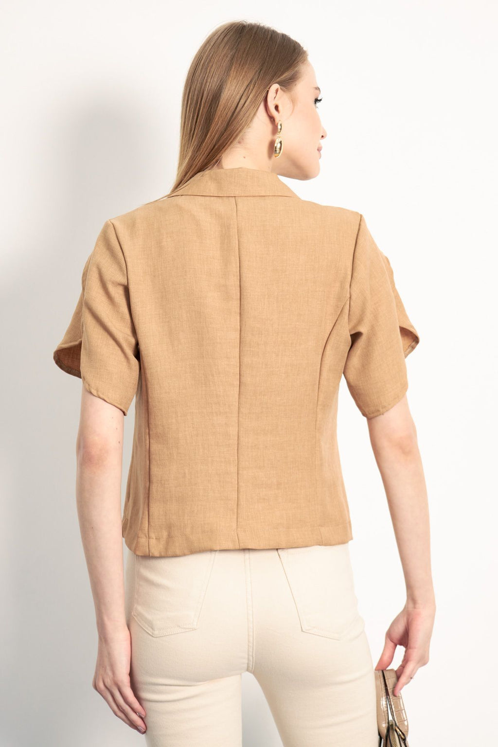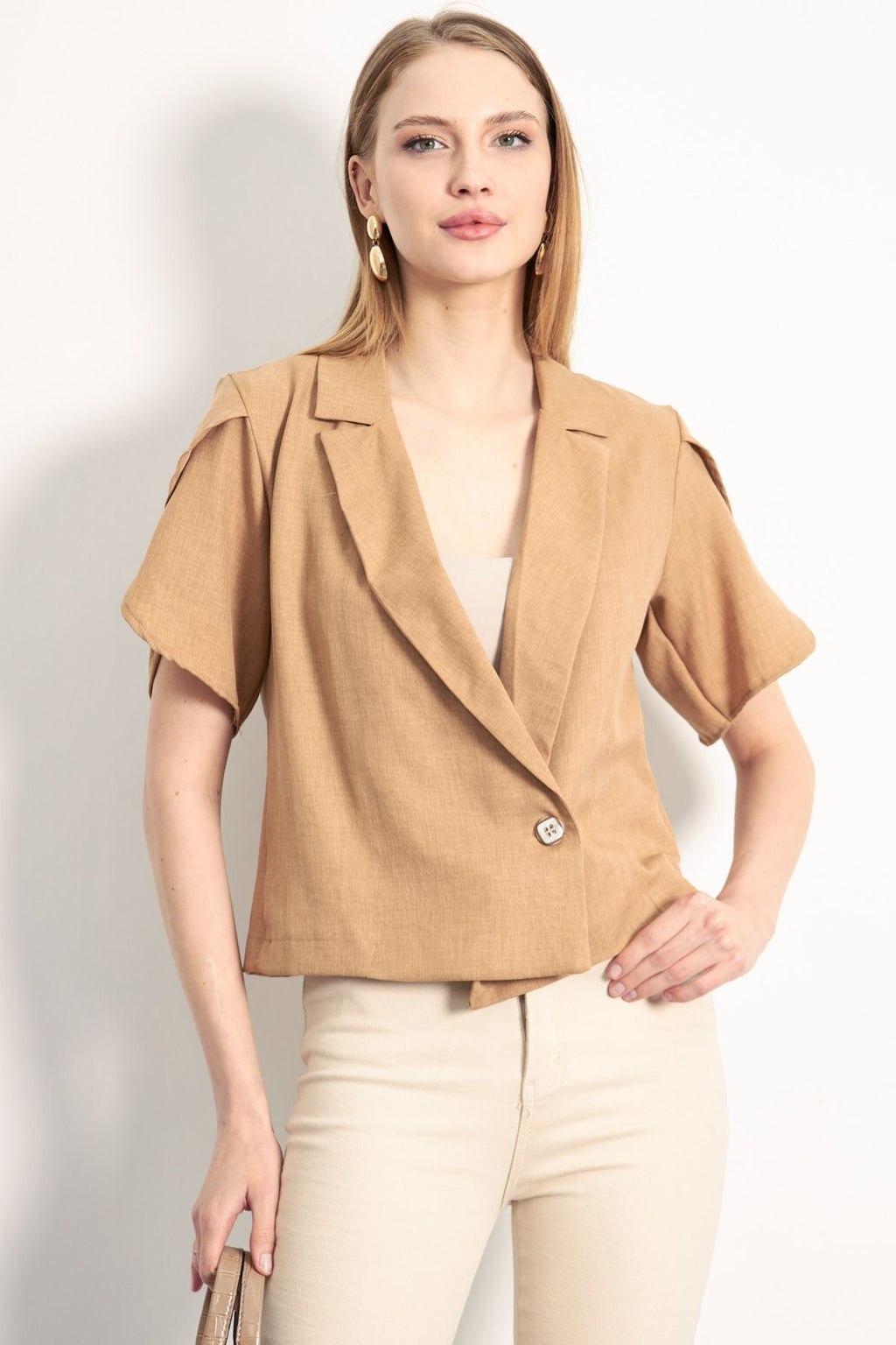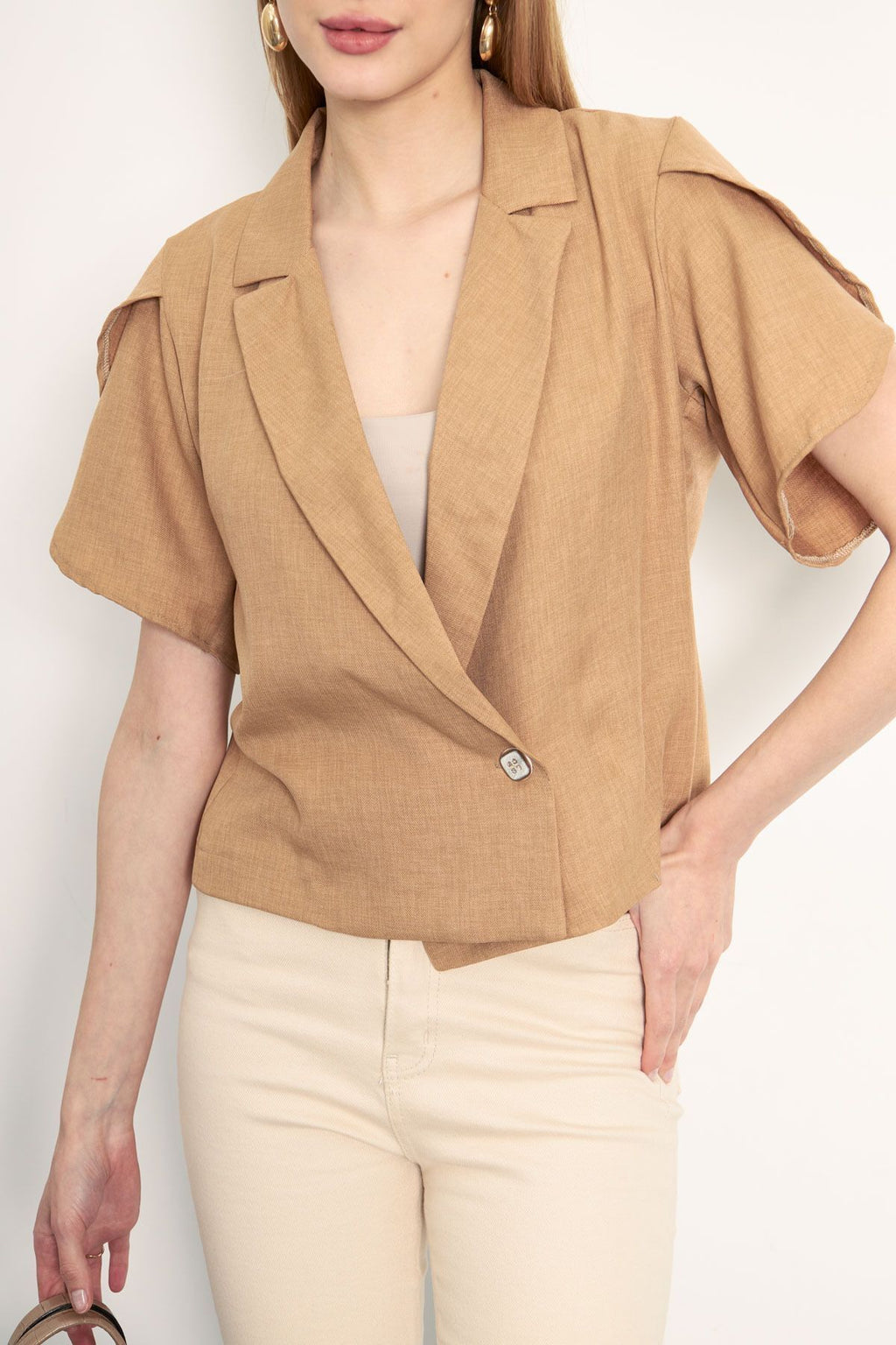 WOMEN'S CAMEL ARM SUSTMAC DETAILED CROP SHORT SOLD JACKET ARM-24Y001048