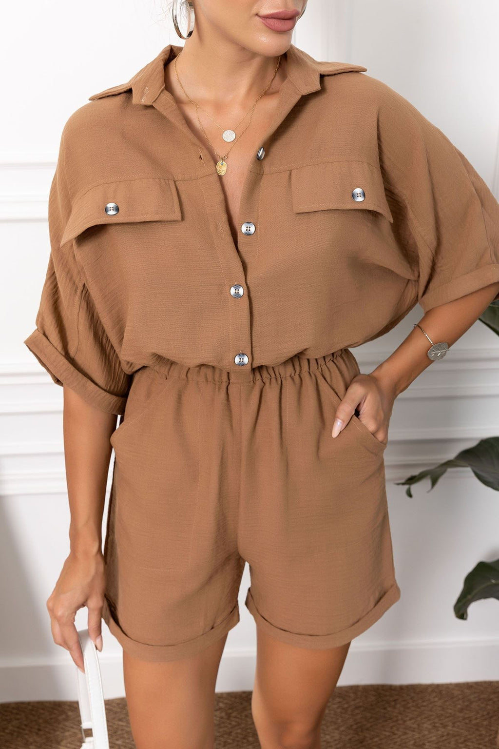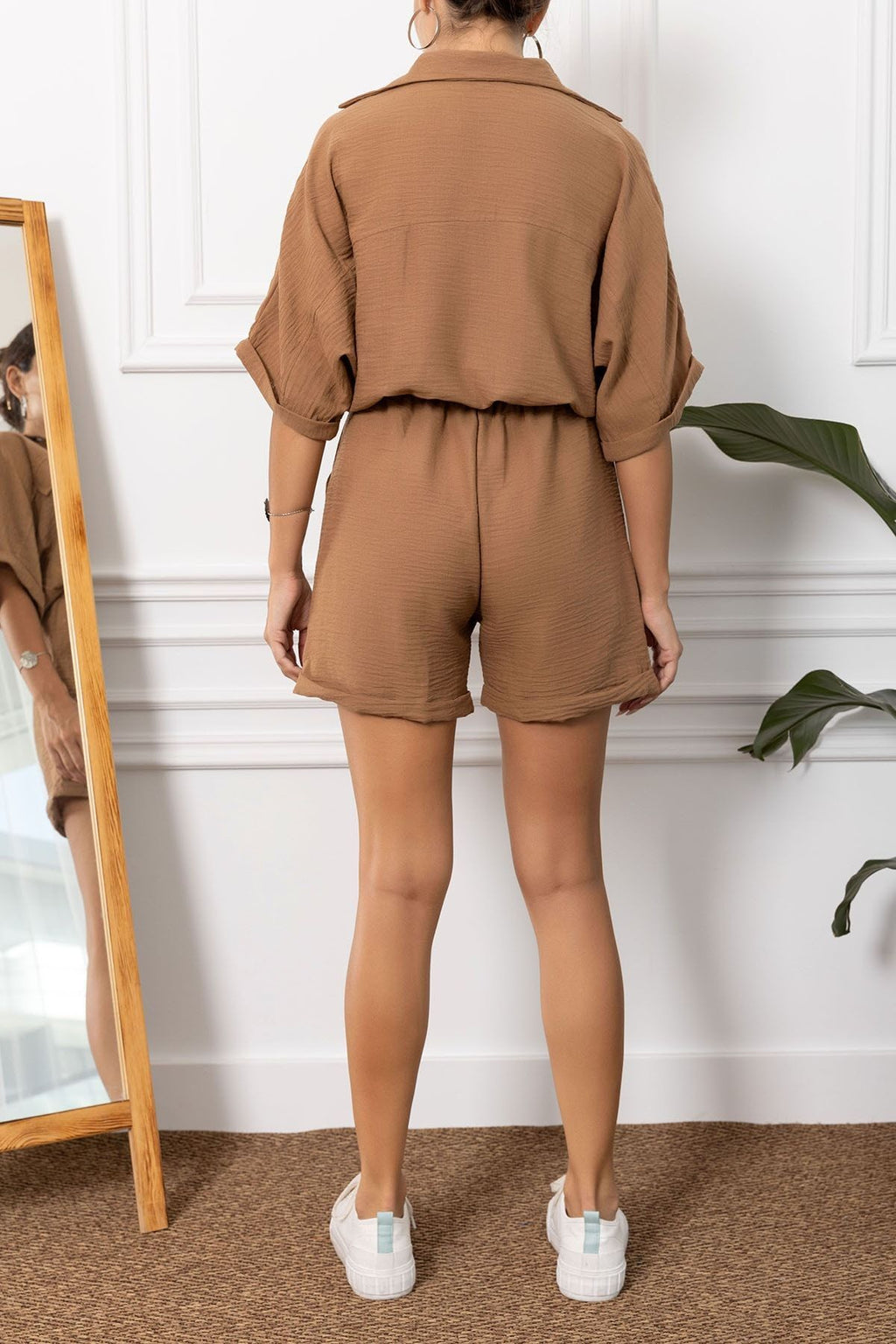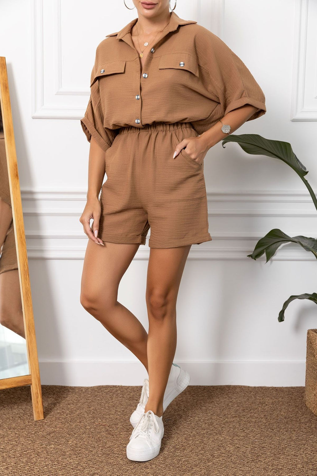Women's Coffee Bat Arm Pocket Waist Waist Waighted Short Short Short Arm-23y001075
