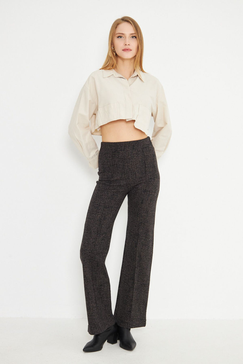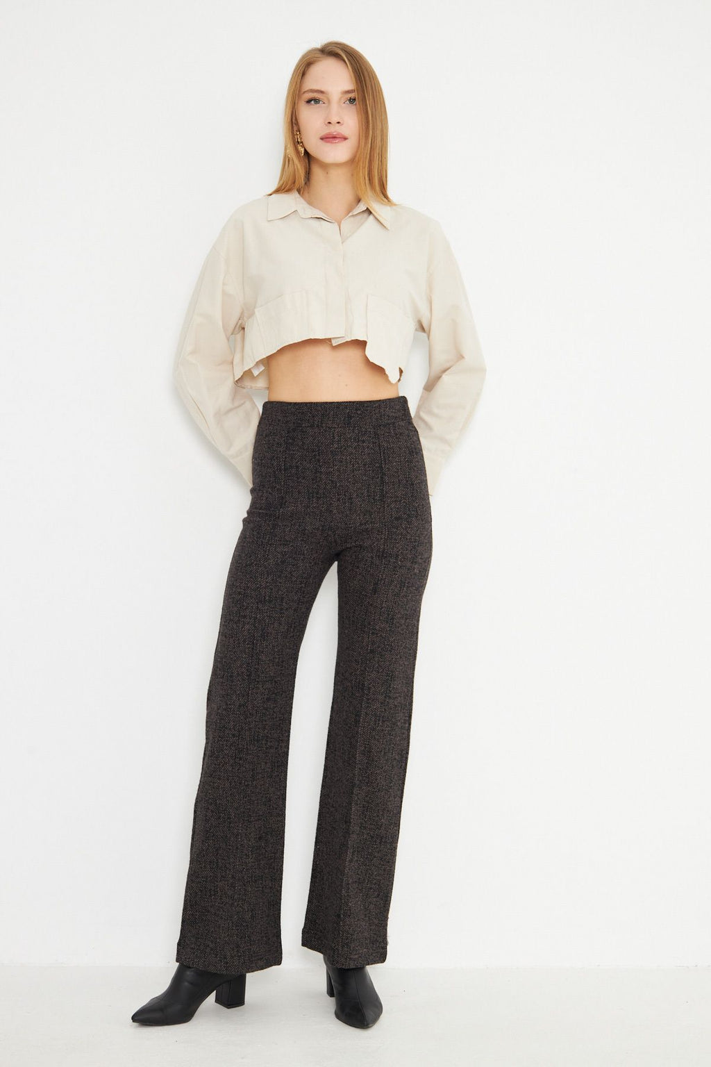 Women's Coffee Waist Rubber Ironing Track Sewing Pants ARM-25K001058