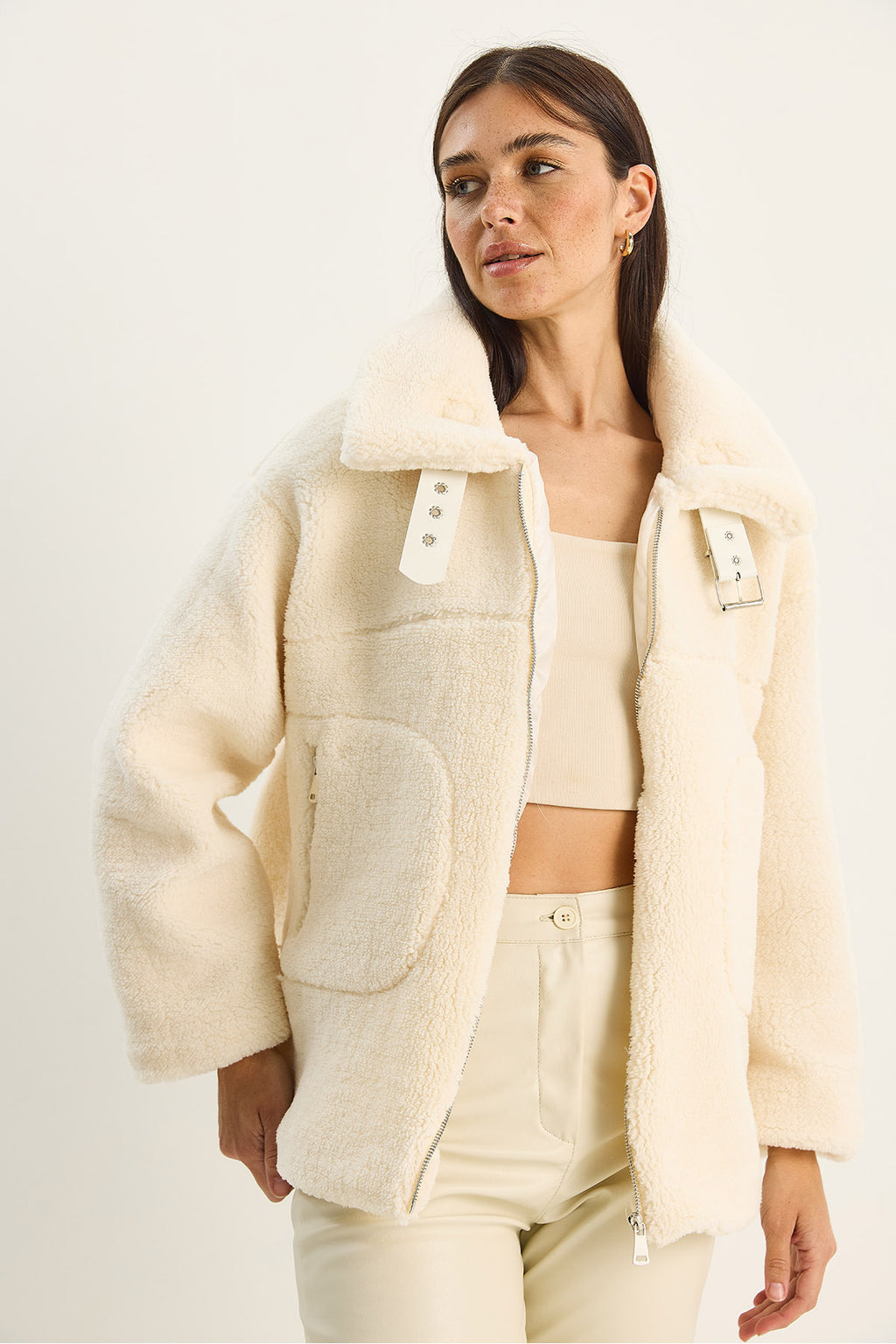 Women's Collar Belt Detailed Lined Plush Coat with Pockets 2635 60281122