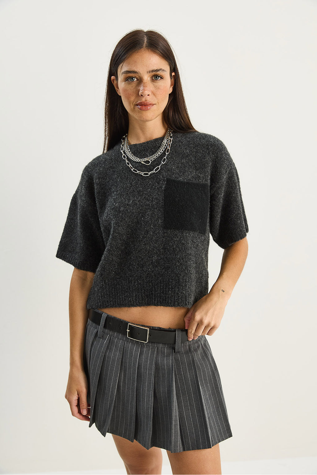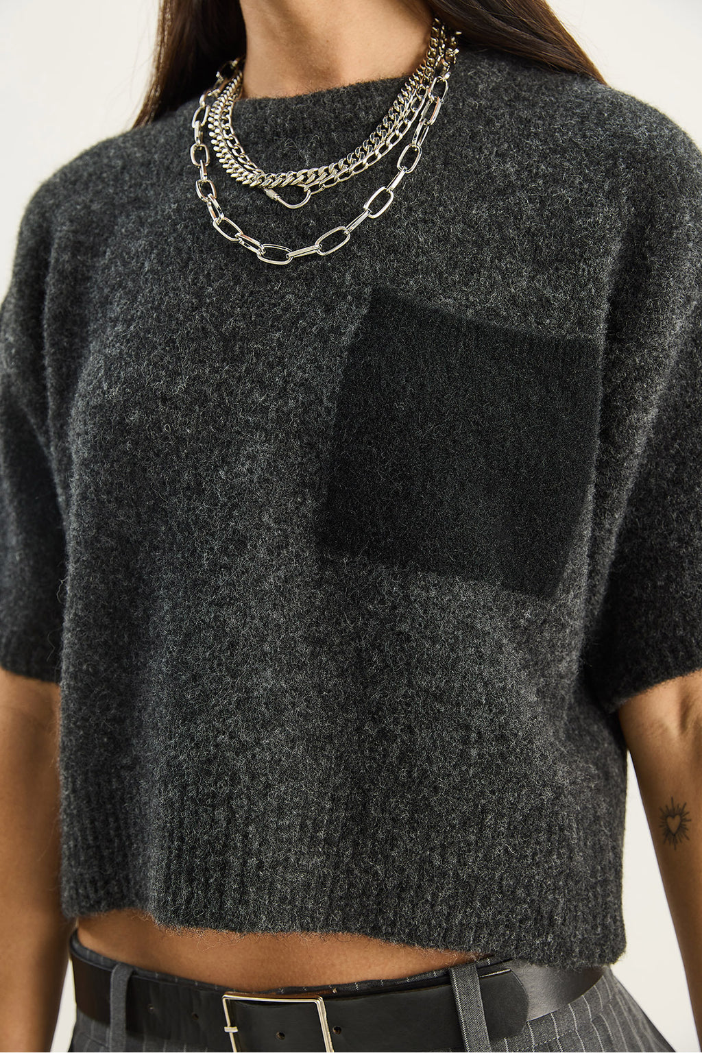 Women's Color Block Pocketed Short Sleeve Knitwear Sweater 2551 60283758