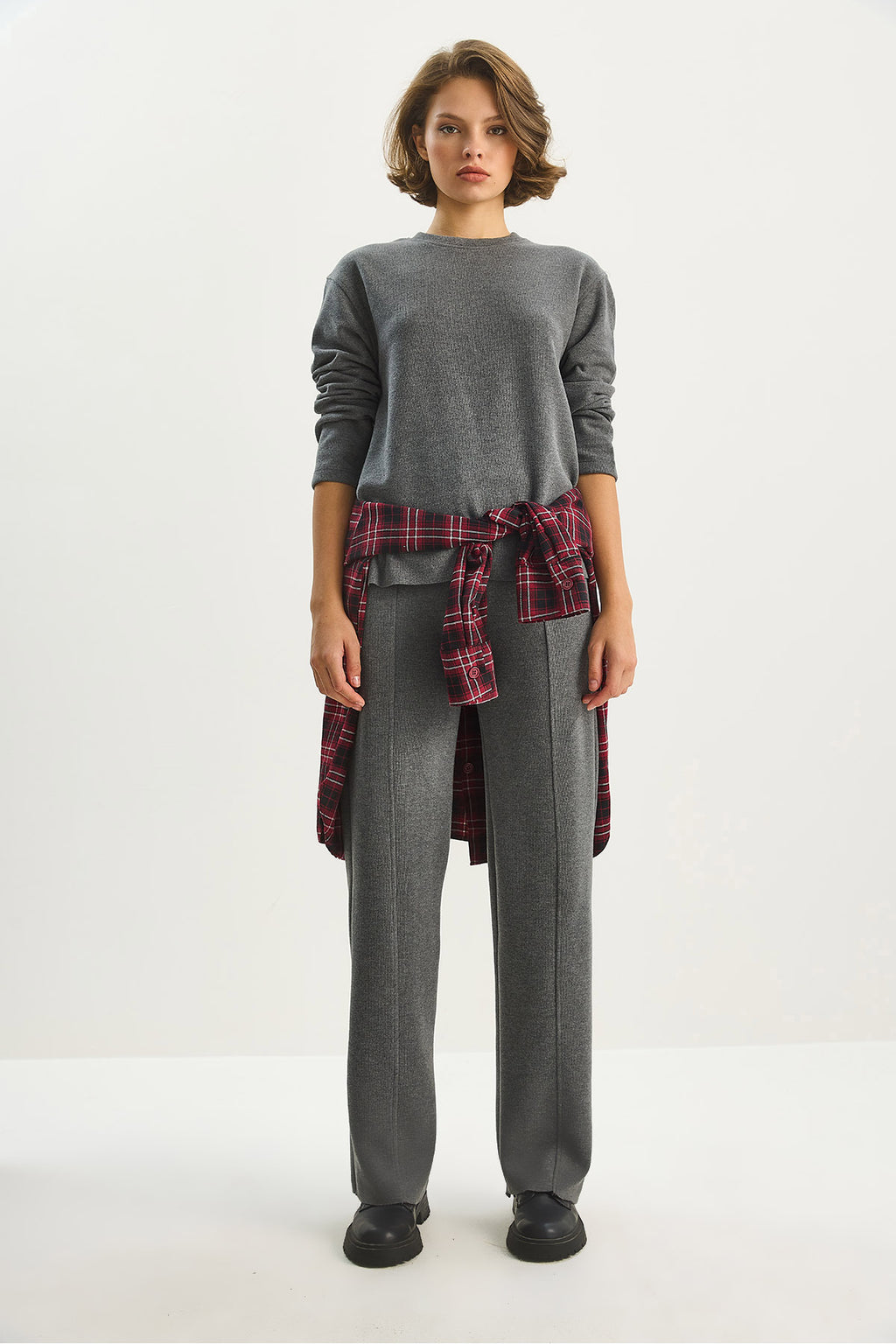 Women's Comfortable Cut Top Ribbed Elastic Waist Trousers Thessaloniki Suit 8432 60283603