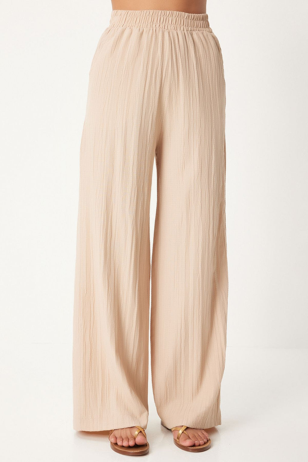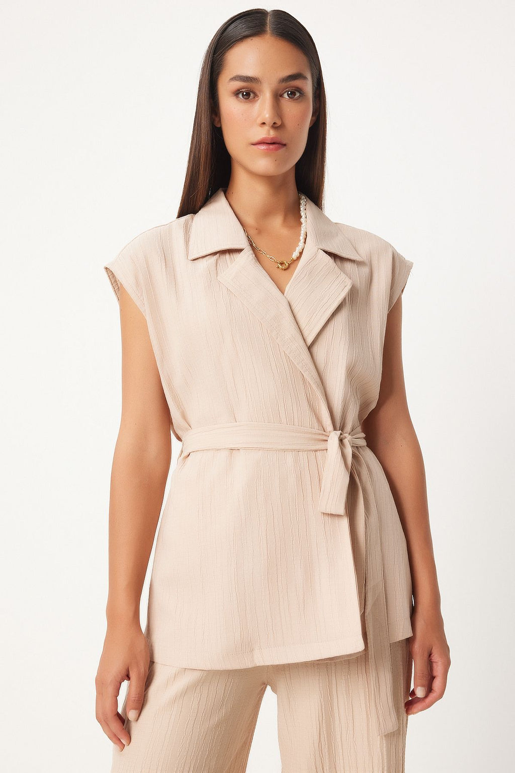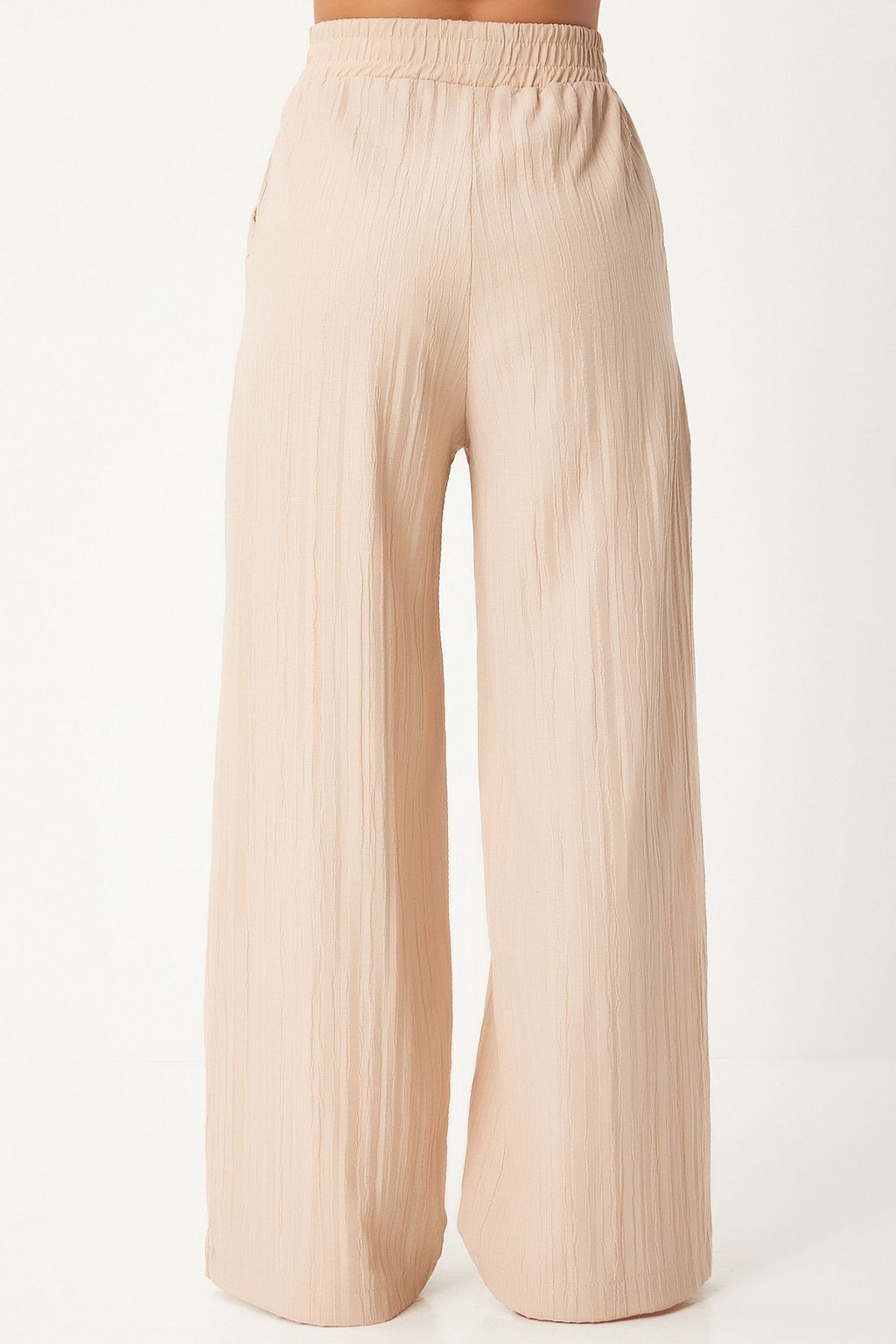 Women's Cream Arched Vest Palazzo Knitting Set By00055
