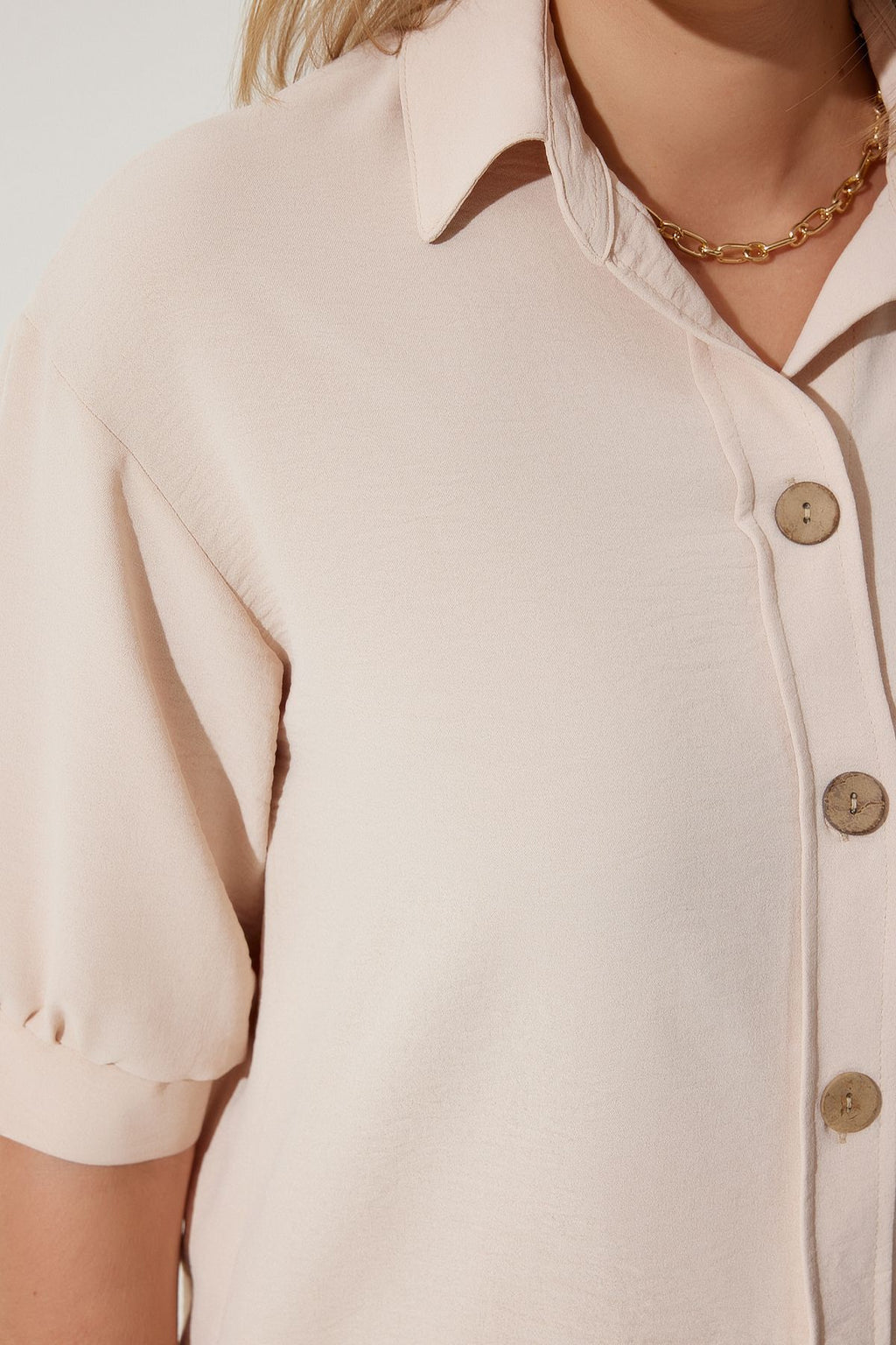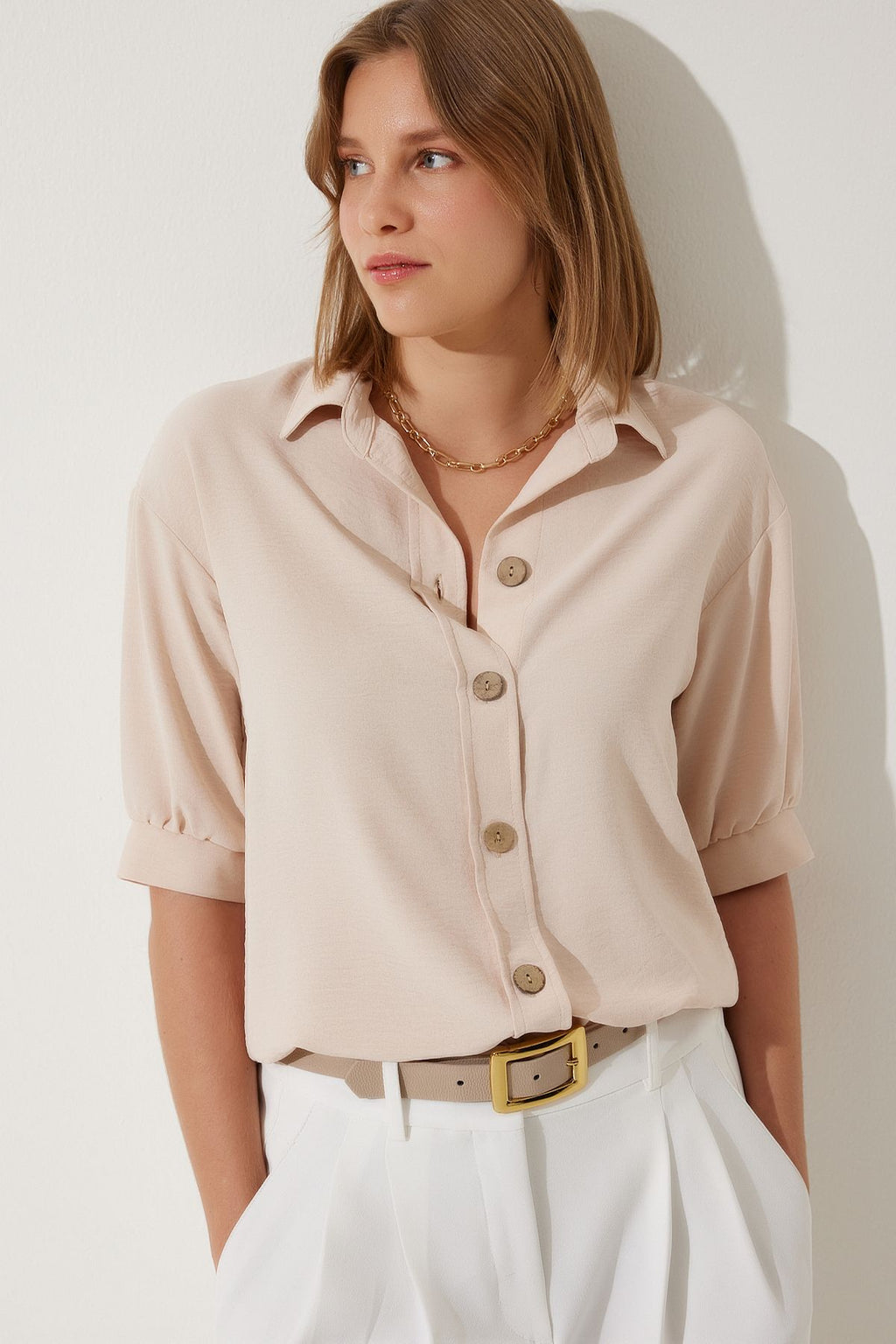 Women's Cream Balloon Sleeve Linen Ayrrin Shirt DD01321