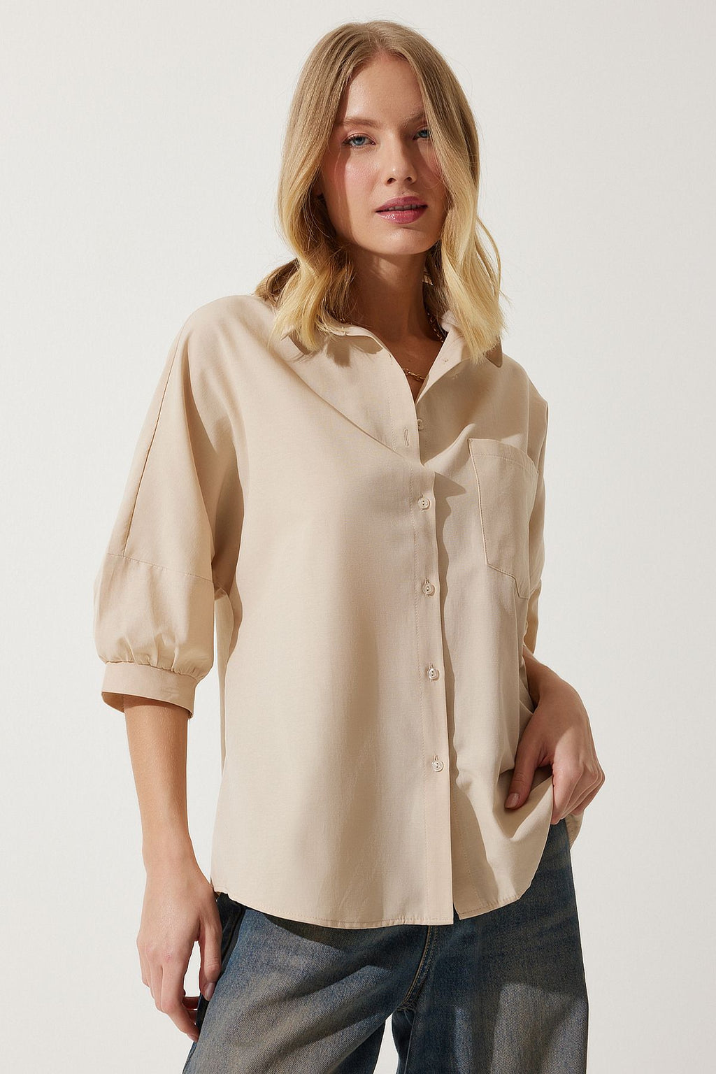 Women's Cream Balloon Sleeve Poplin Shirt DD01308