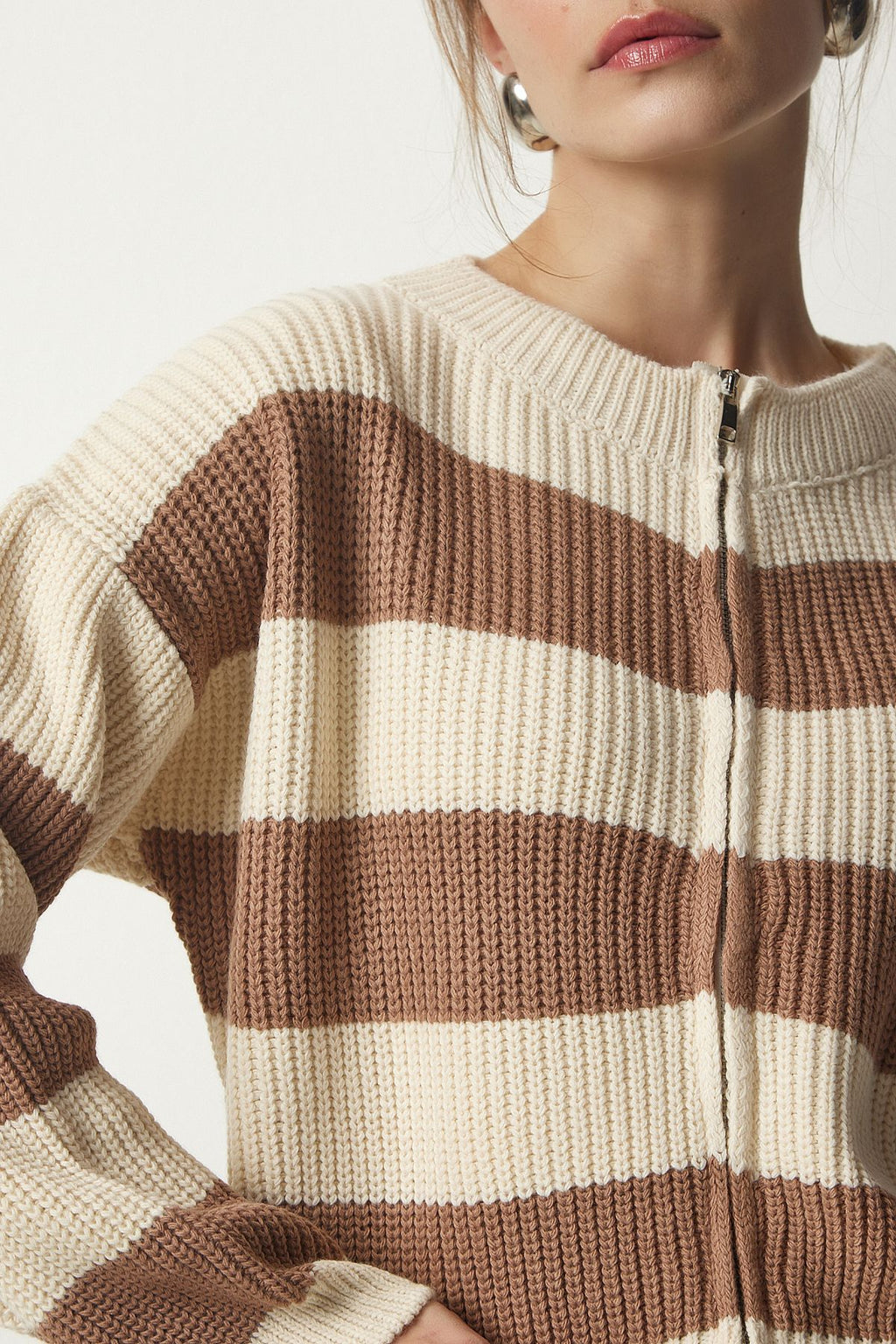 Women's Cream Biscuit Zippered Triko Cardigan MC00246
