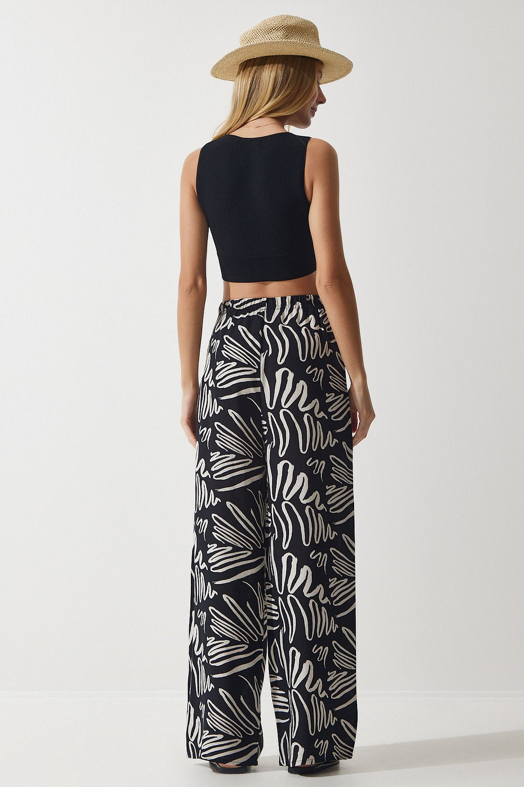 Women's Cream Black Patterned Viscose Palazzo Pants EN00606