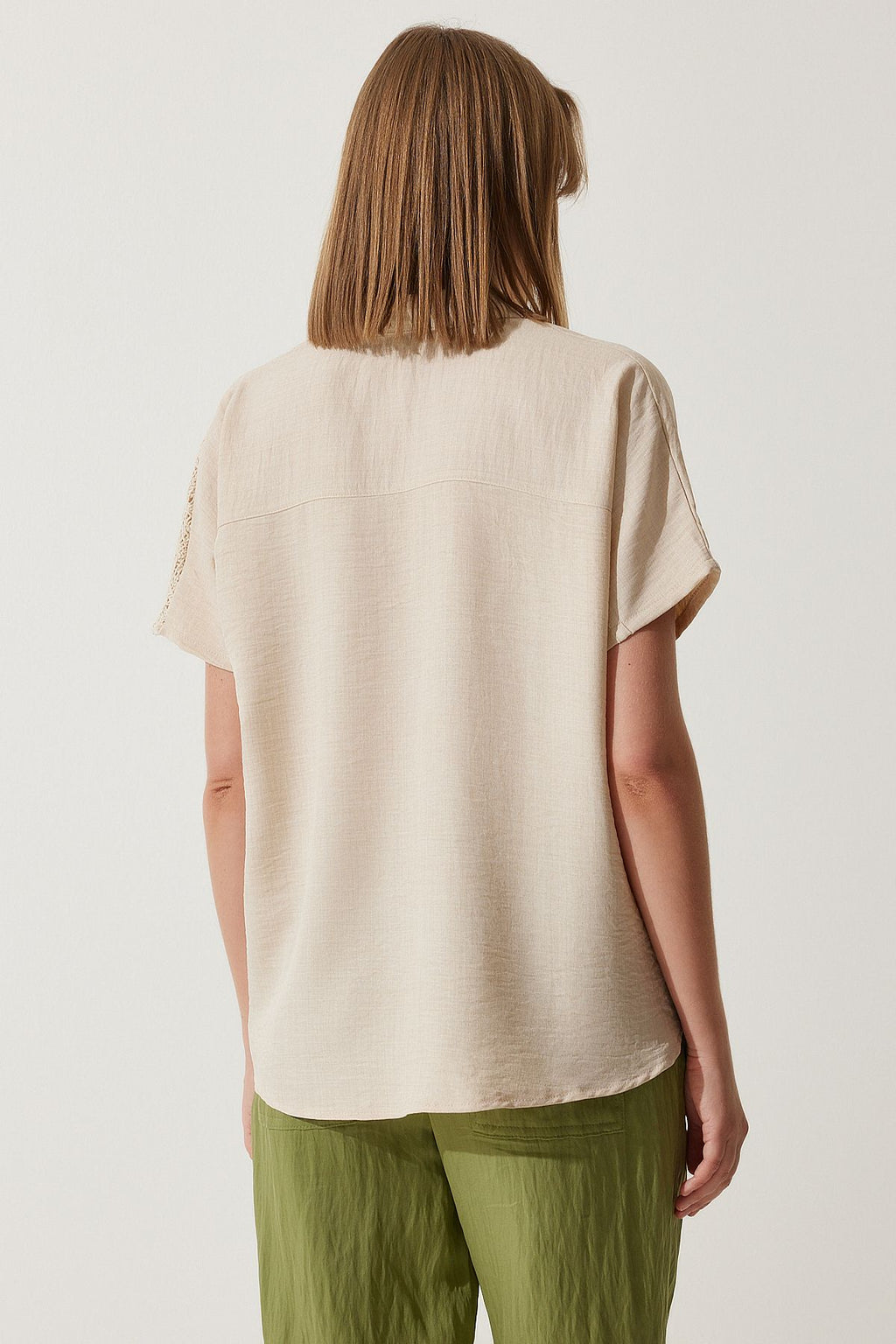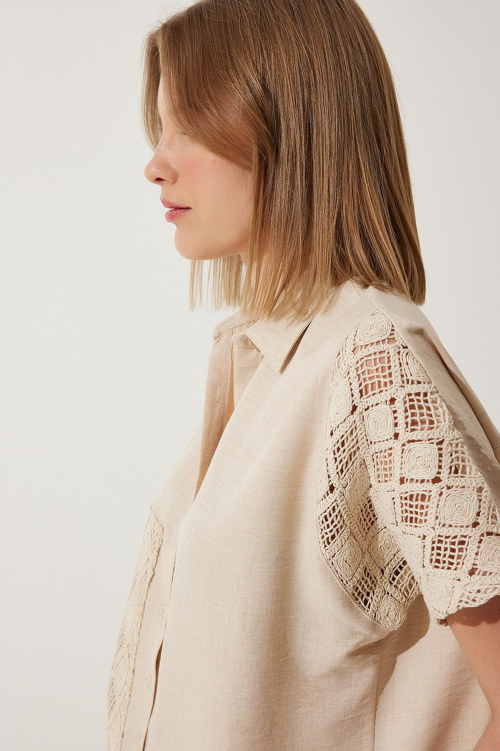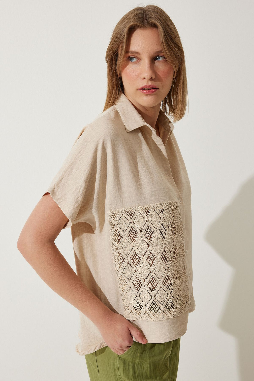 Women's Cream Crochet Lace Detail Linen Shirt TP00039