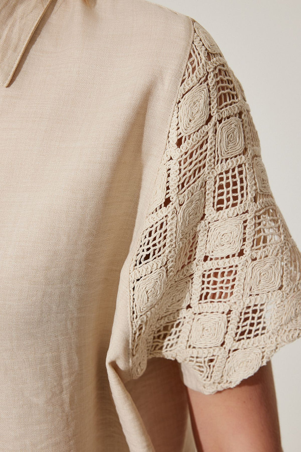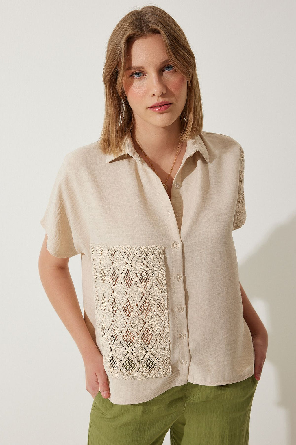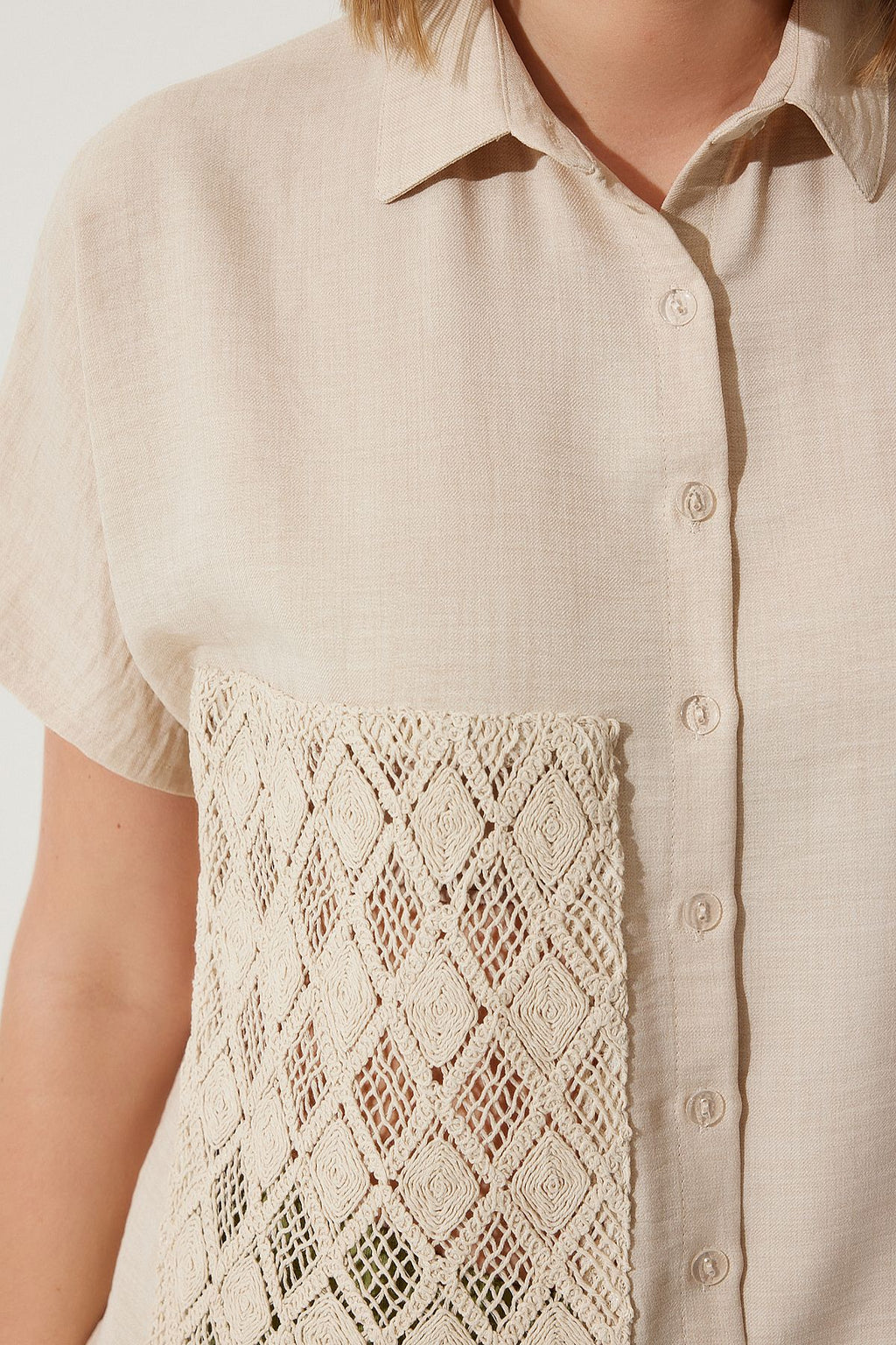 Women's Cream Crochet Lace Detail Linen Shirt TP00039