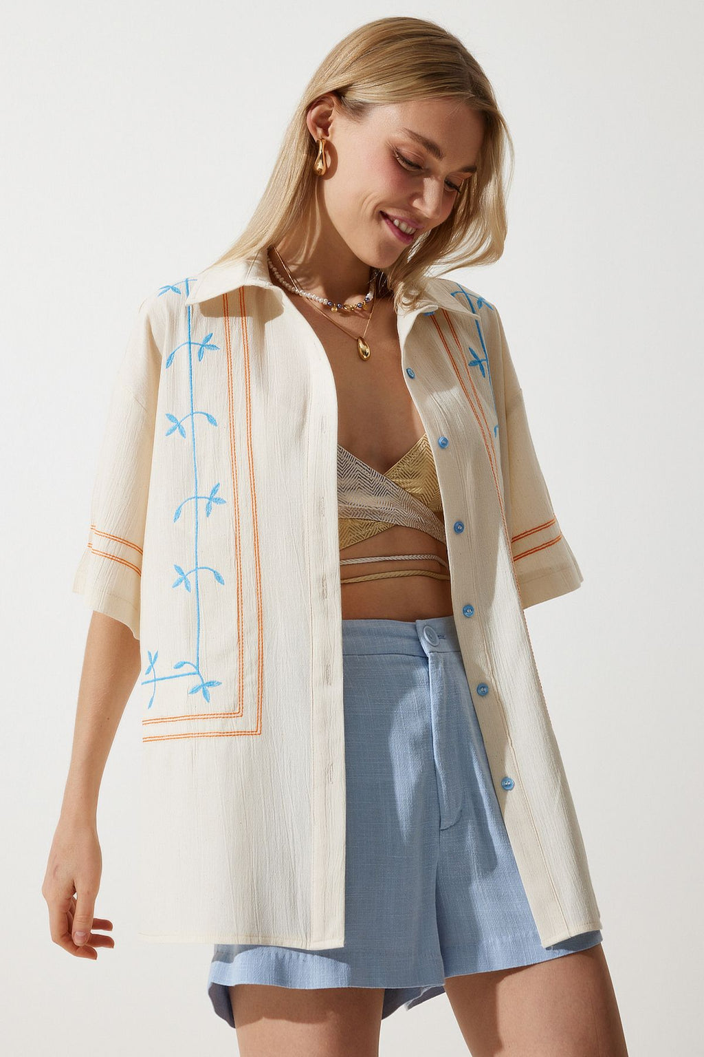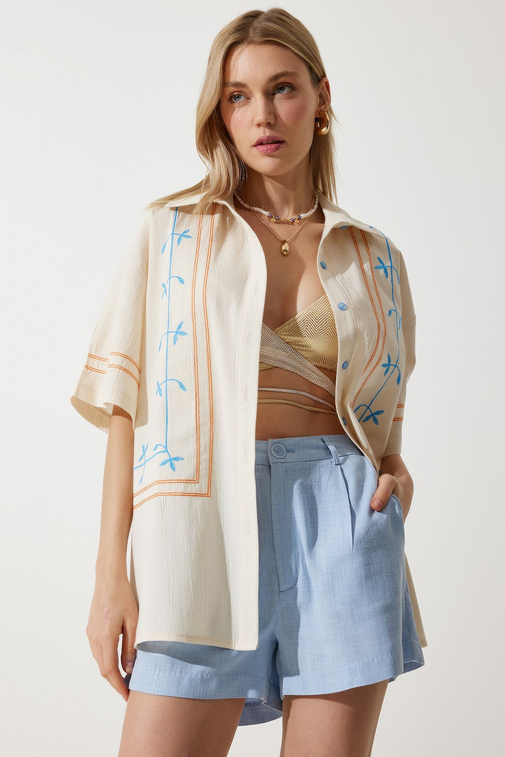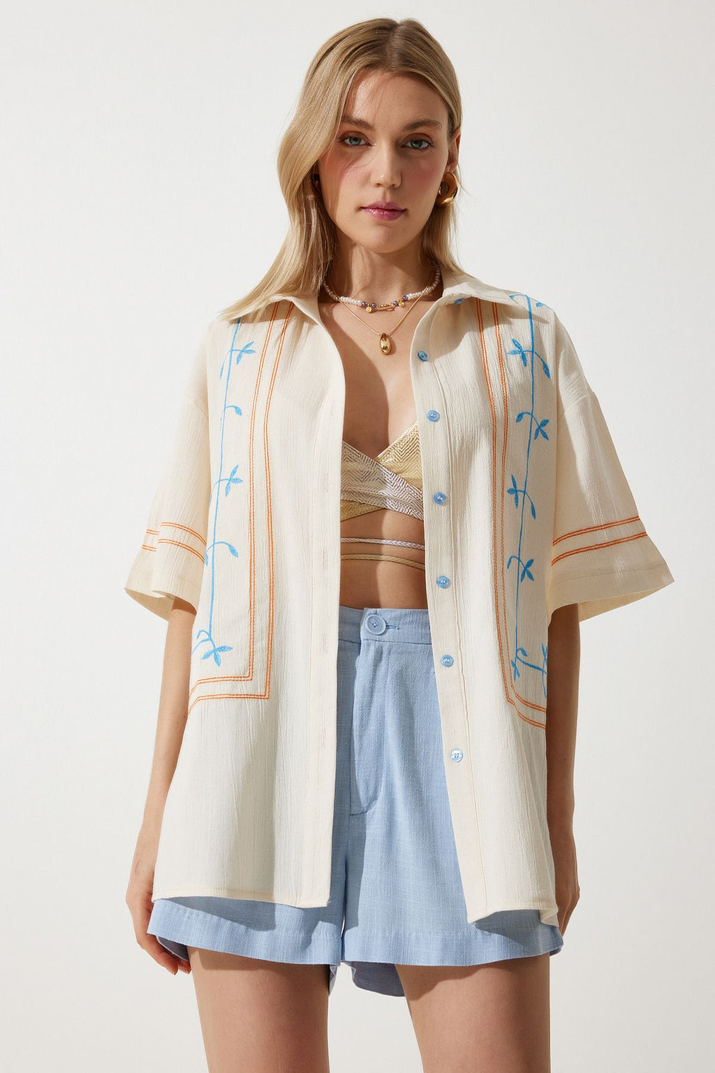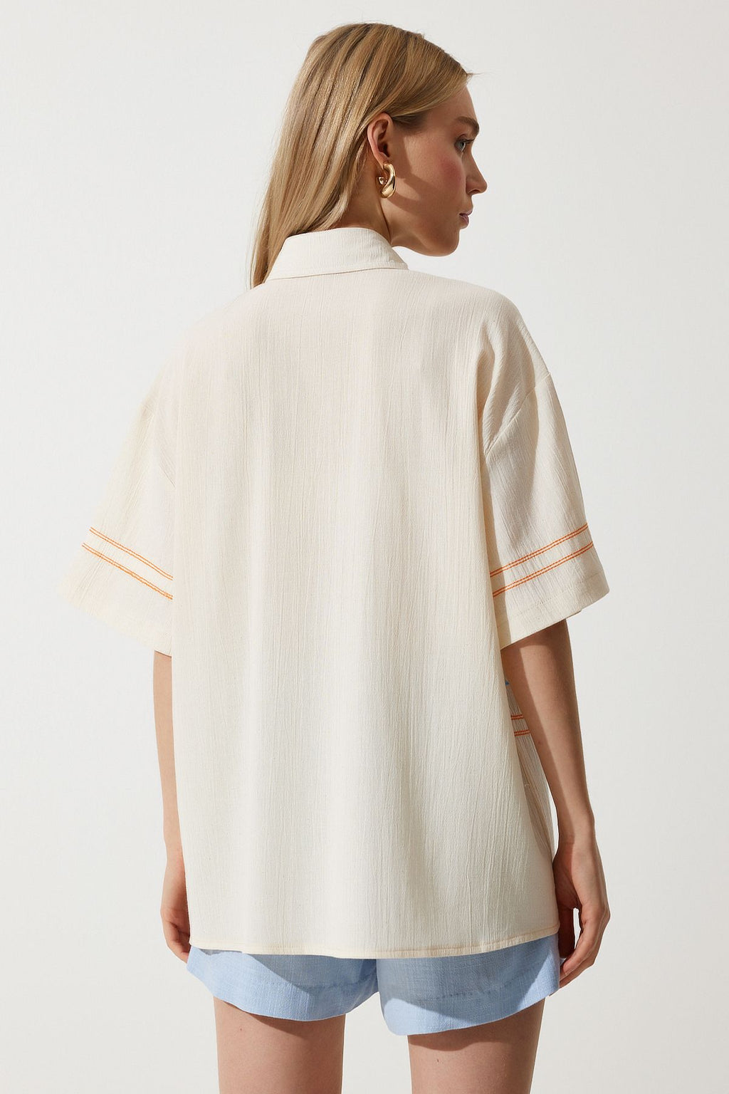 Women's Cream Embroidery Linen Shirt RG00039