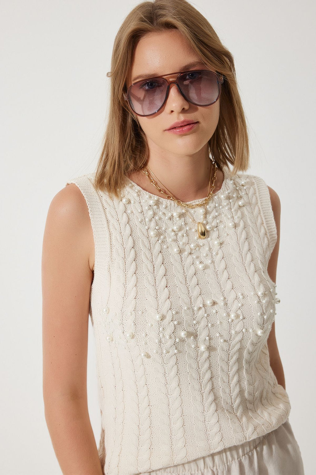 Women's Cream Glass textured summer knitwear sweater BV00118