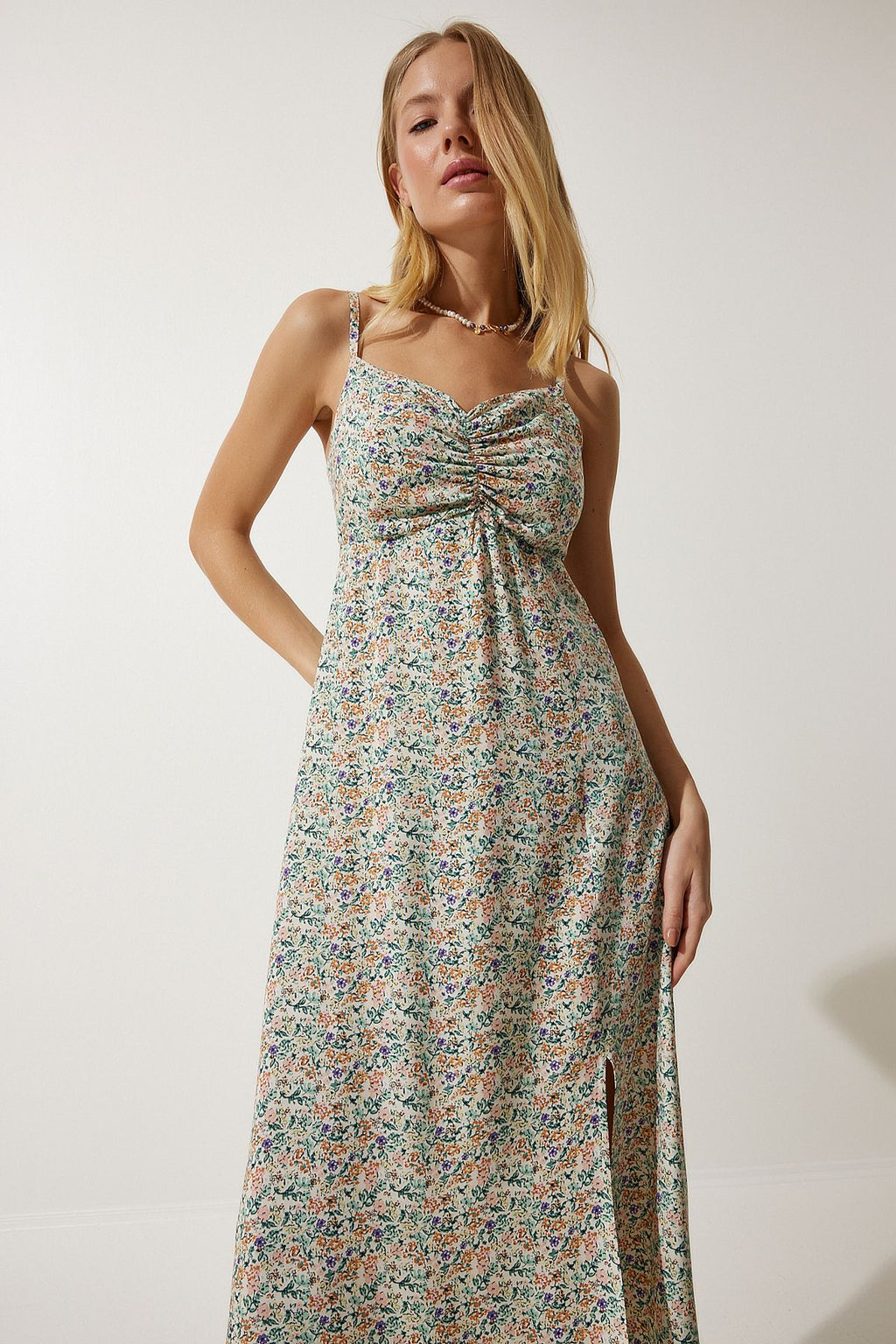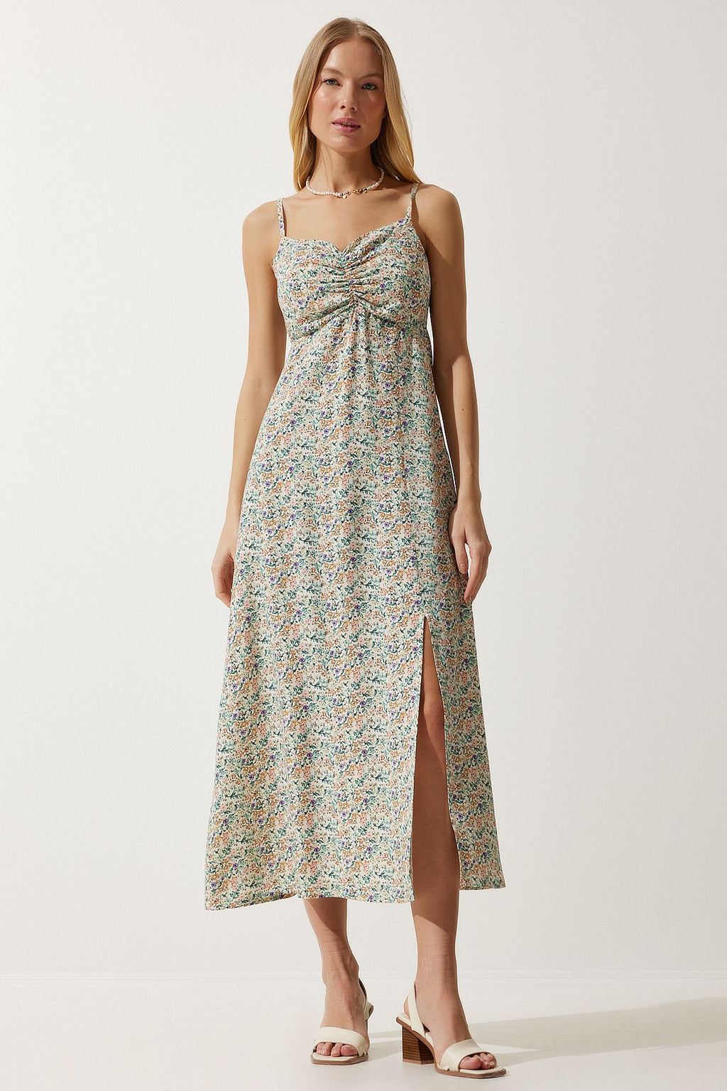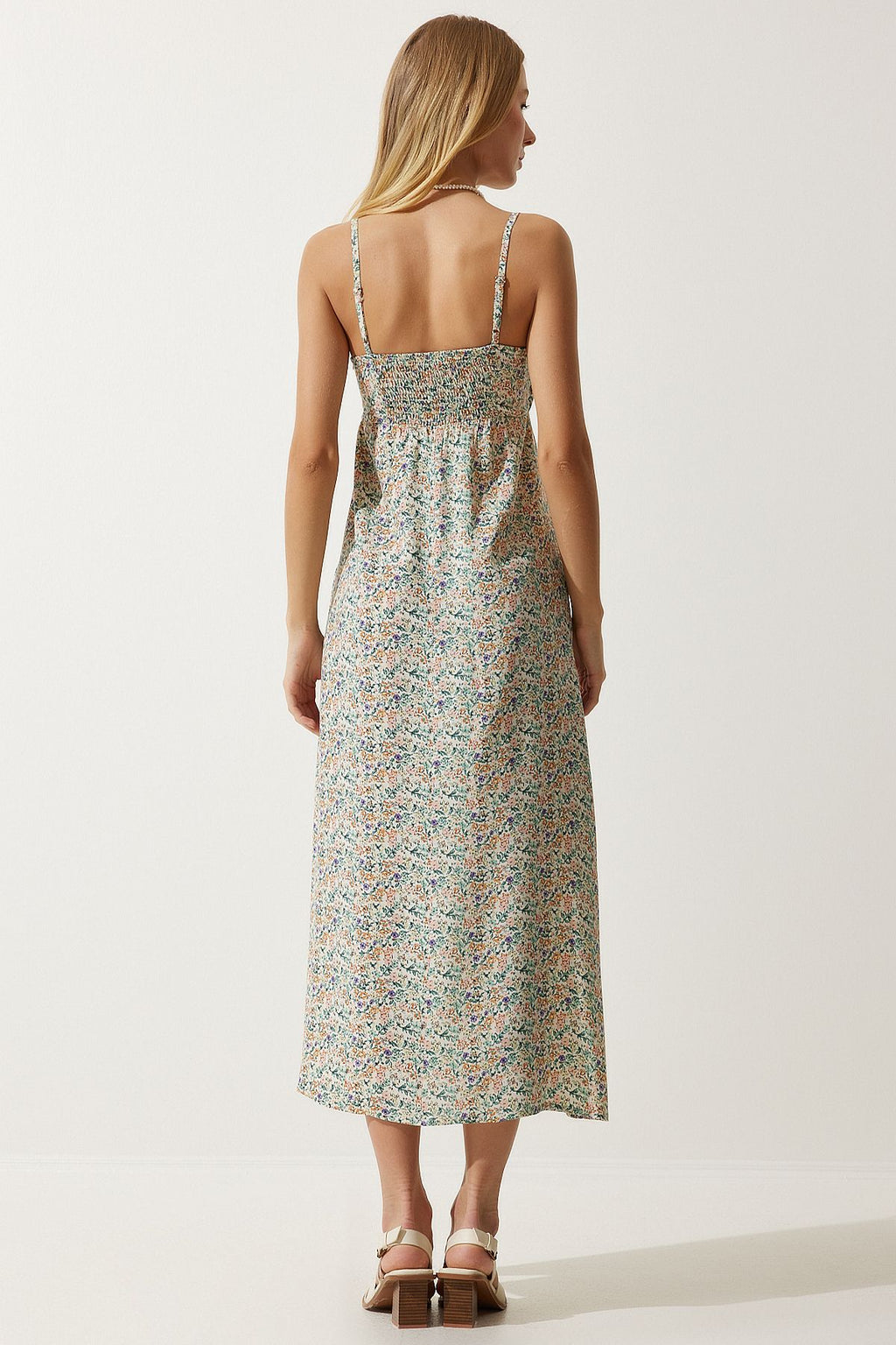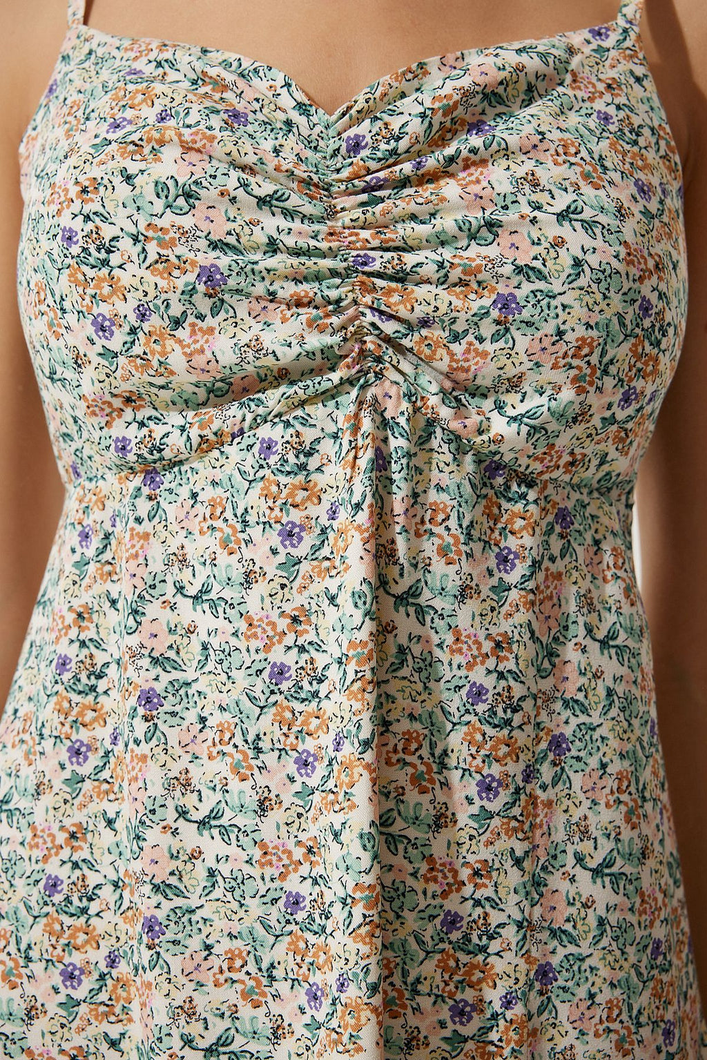 Women's Cream Green Hanger Patterned viscose dress ub00236