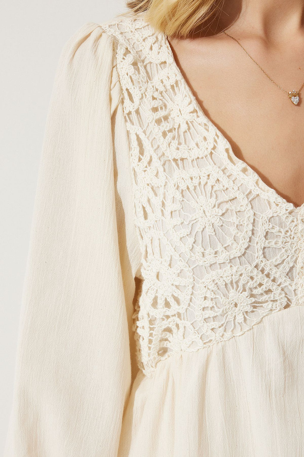 Women's cream guipure detailed summer linen dress BP00152