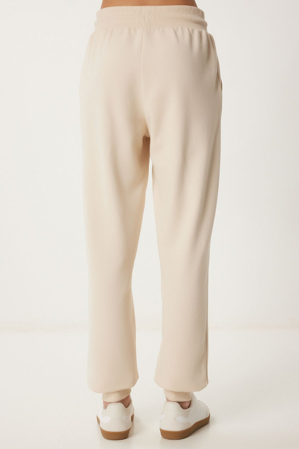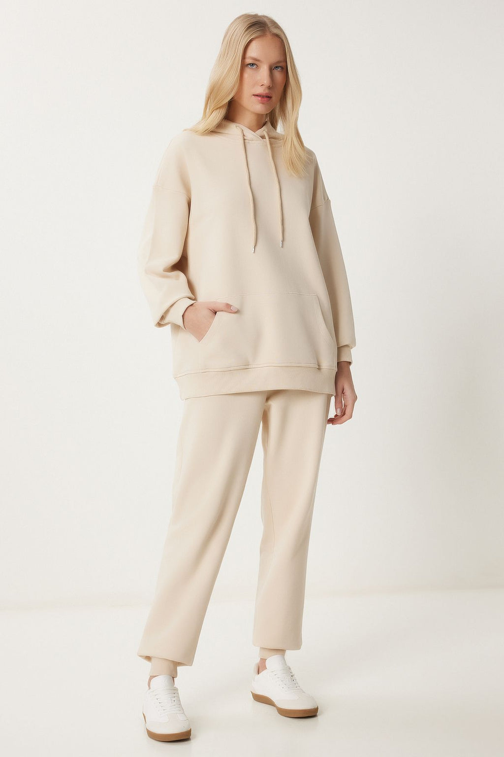 Women's Cream Hooded Sweatshirt Jogger Oversize Knitting Satatches PYS0027