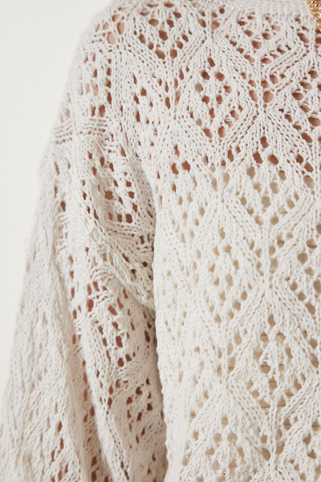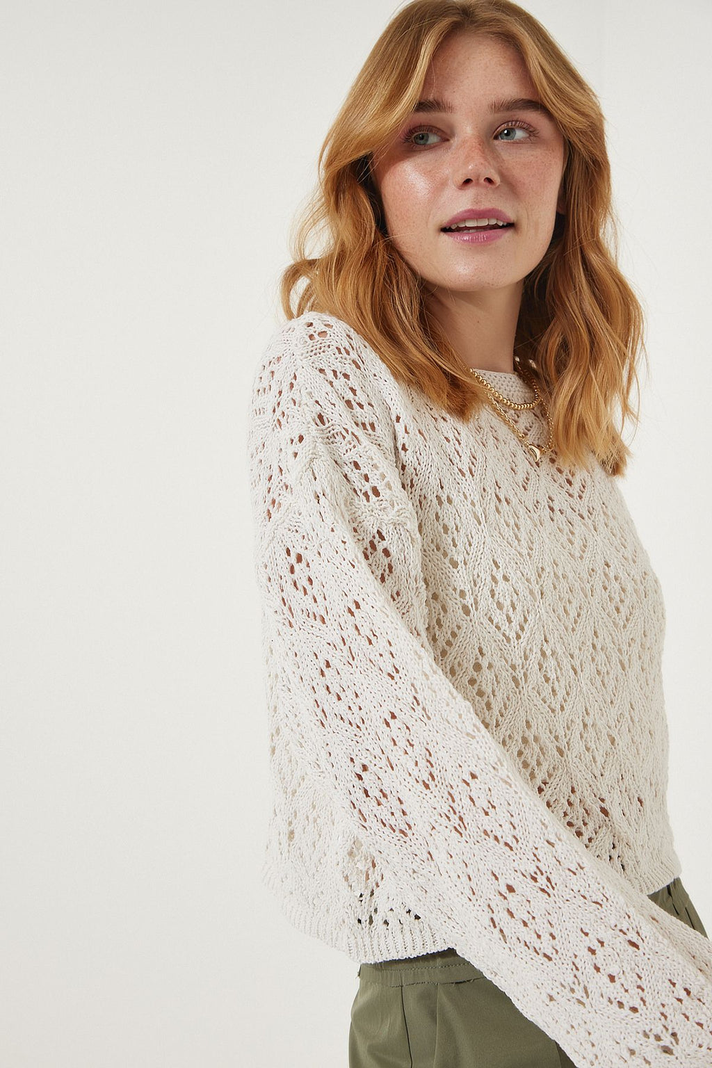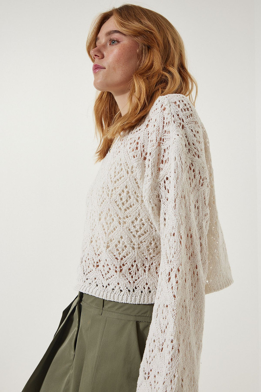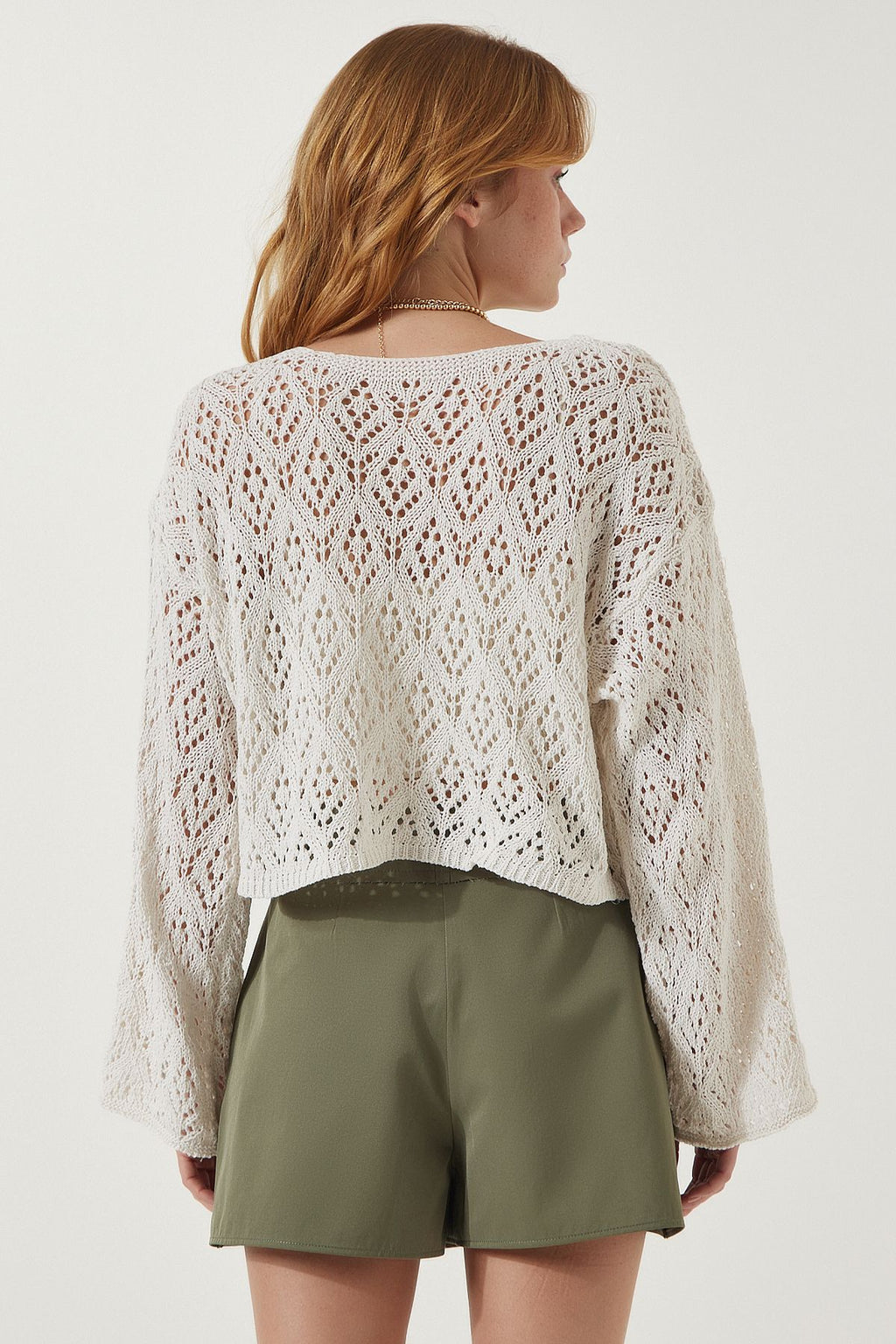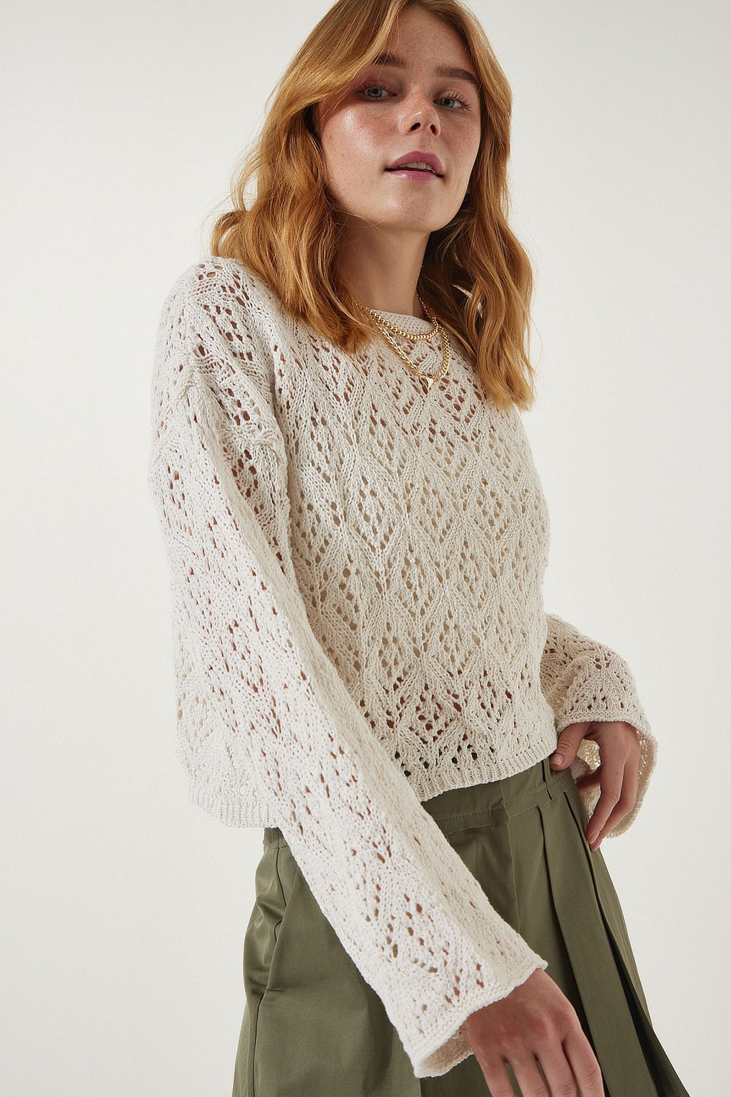 Women's Cream Kayık collar Degree Crop Triko Sweater MW00144