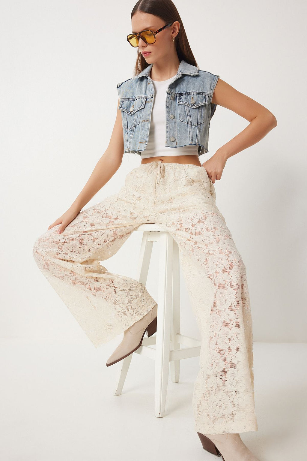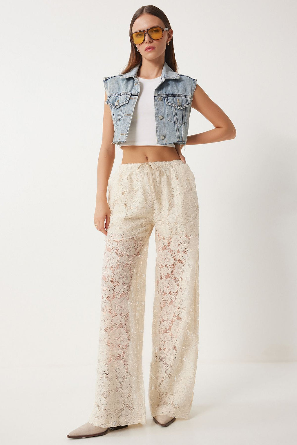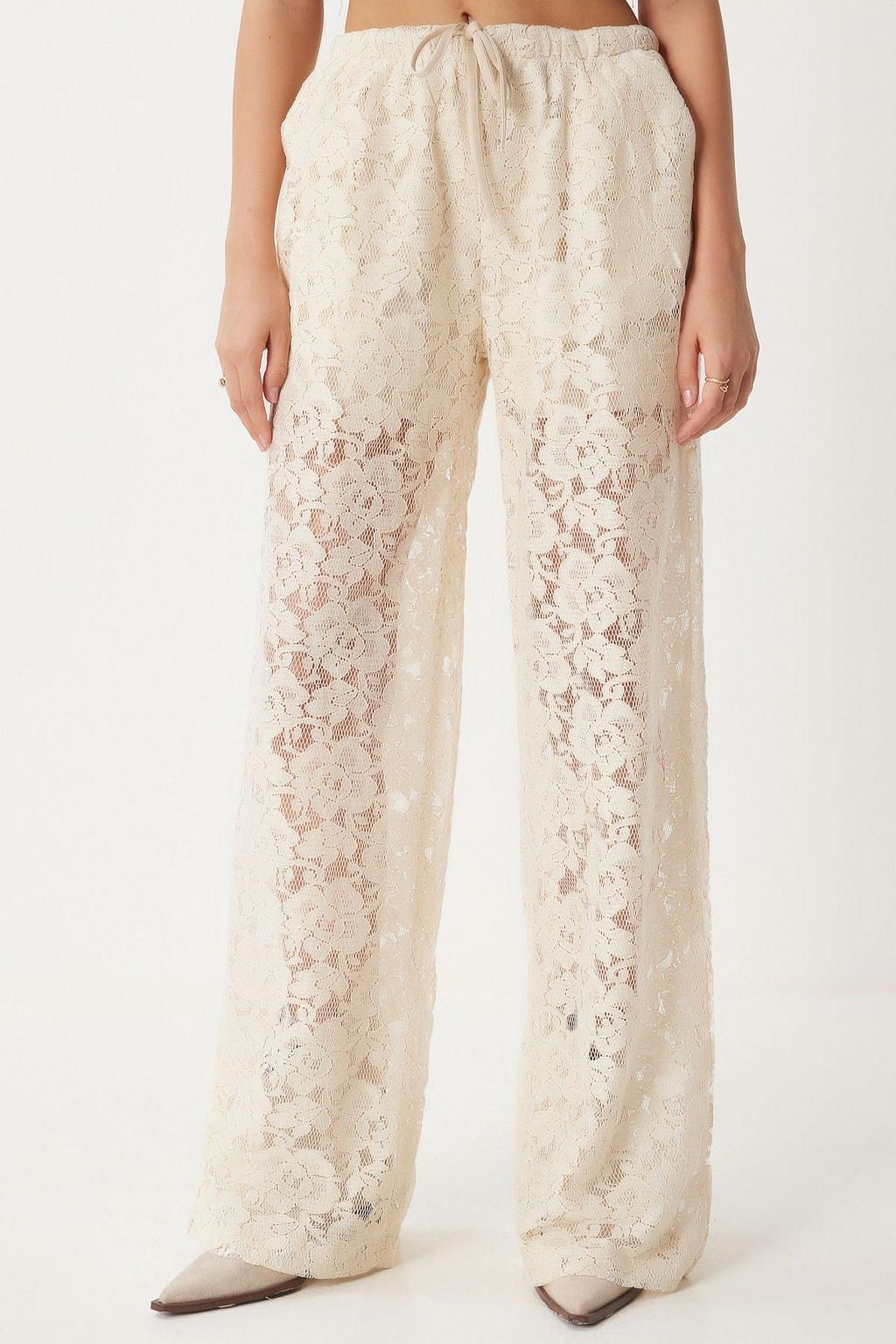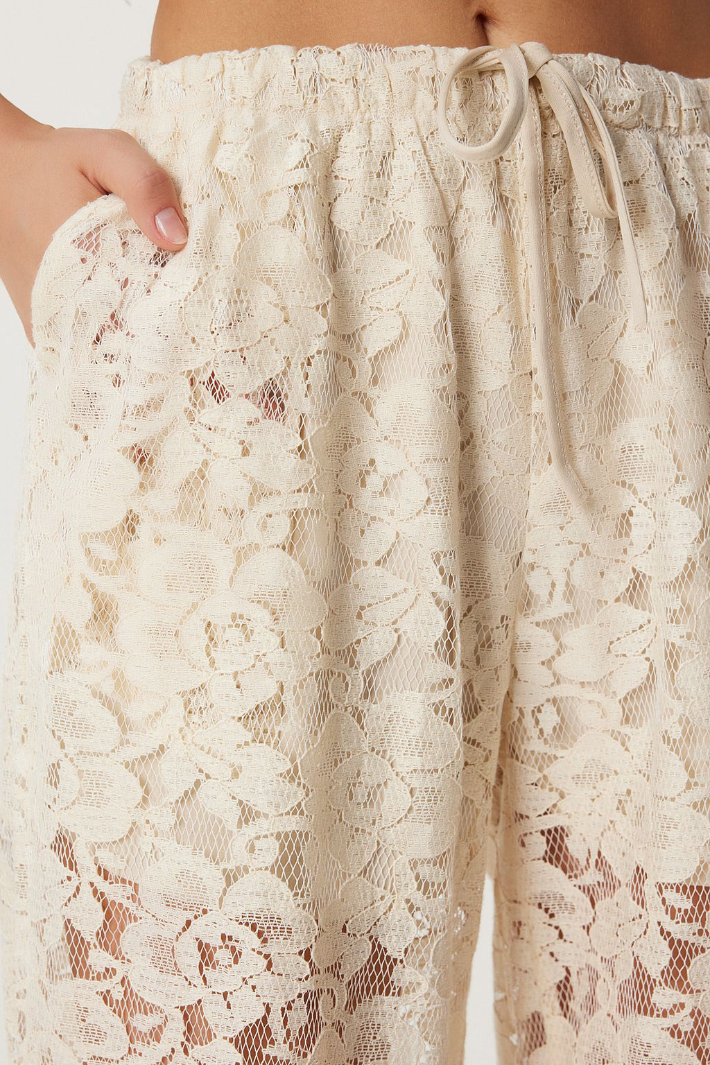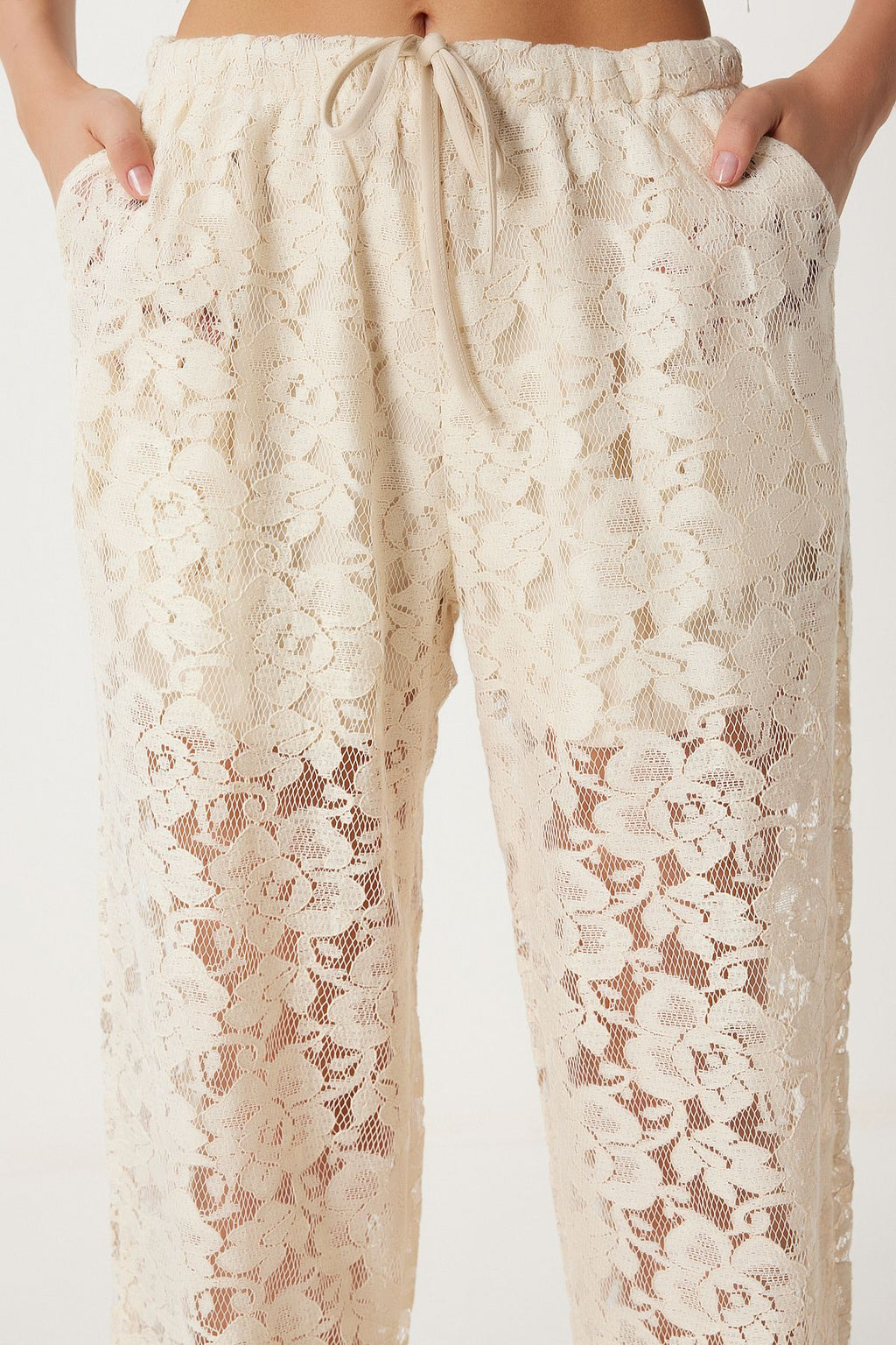 Women's Cream Lace Transparent Pants UL00051
