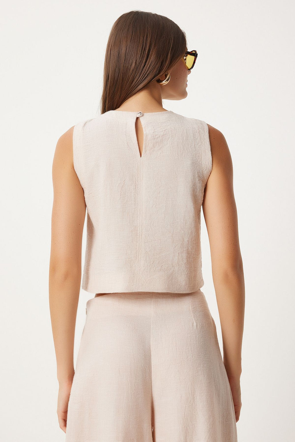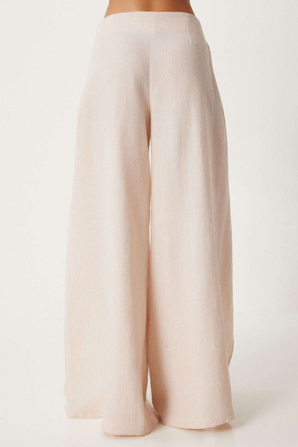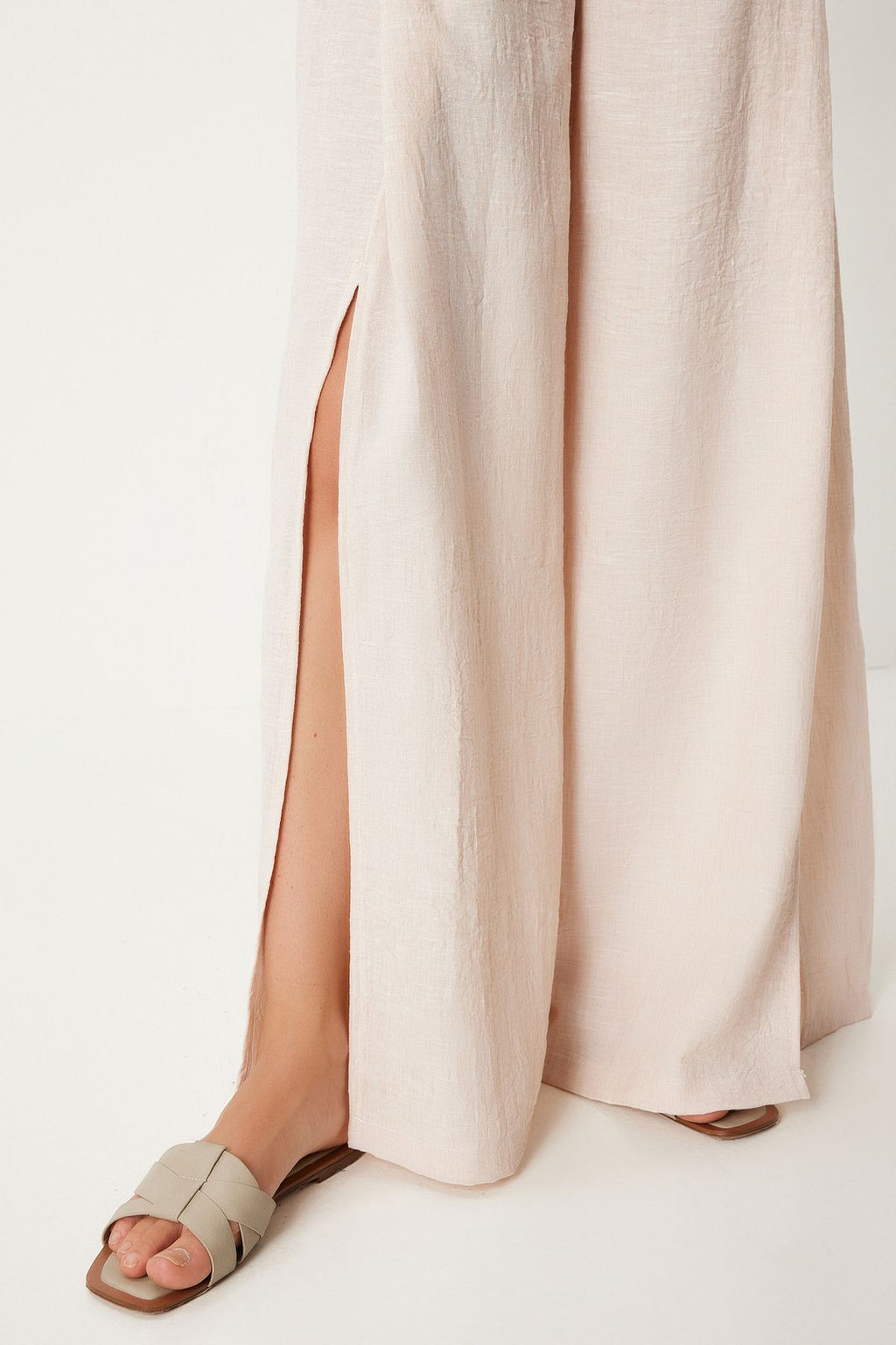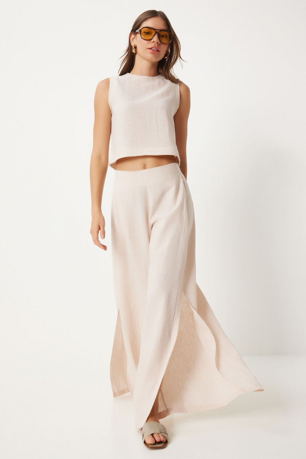 Women's Cream Linen Blouse Slit Pants Set FN03271
