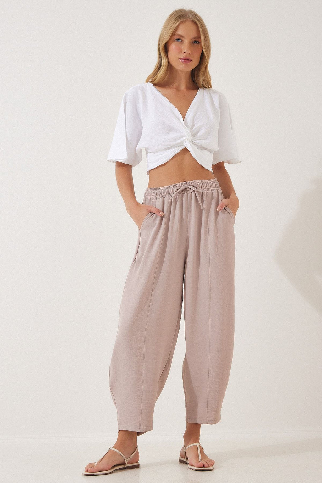 Women's Cream Linen Shalwar Pants CI00036