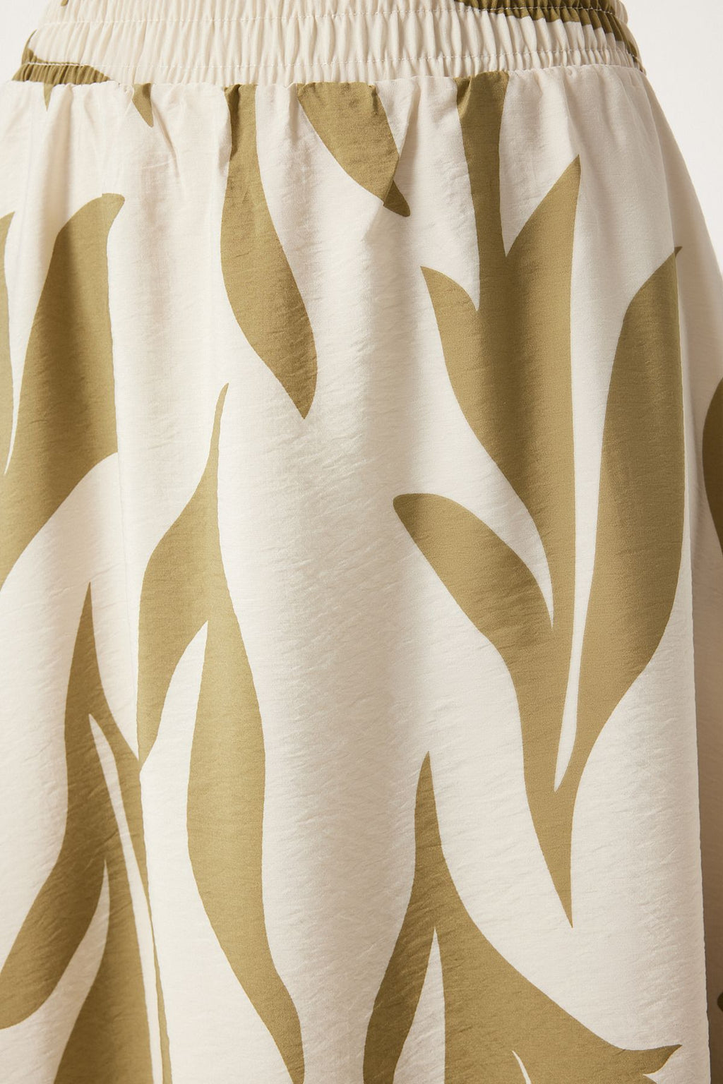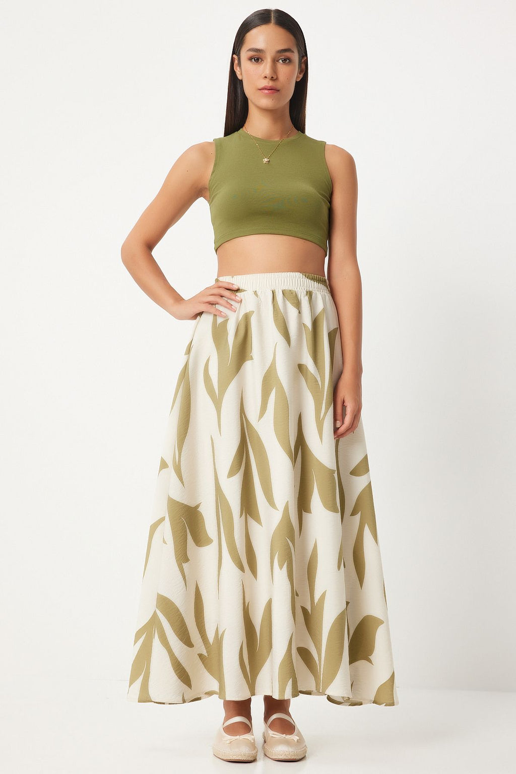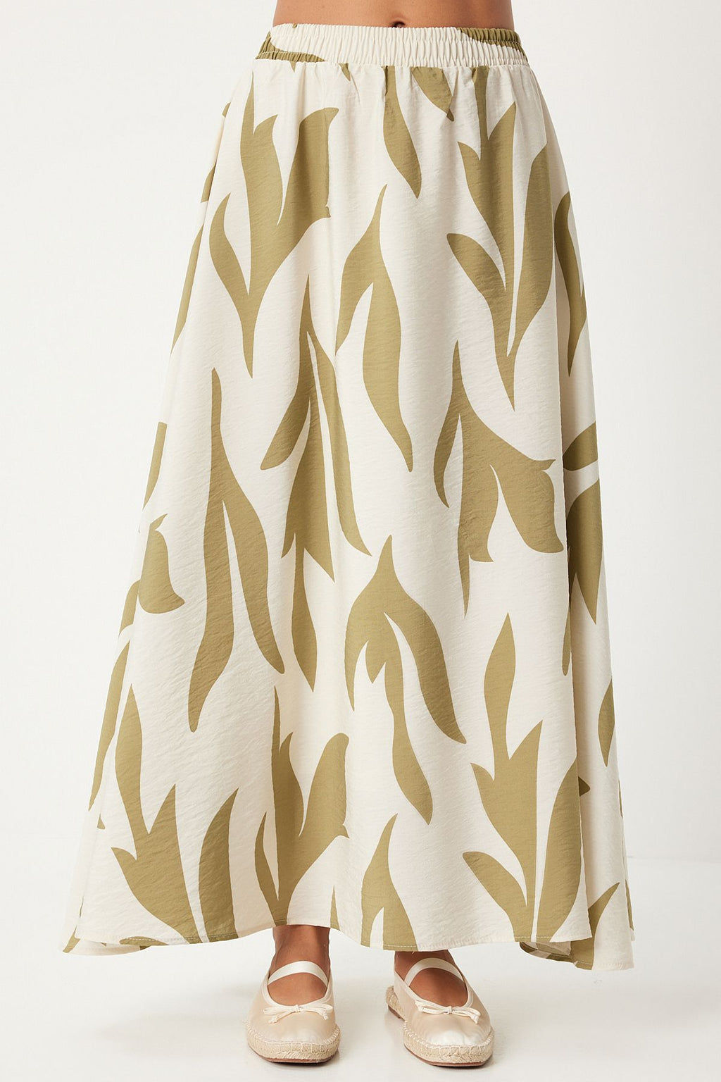 Women's Cream Oil Green Patterned Maxi Skirt DD01333
