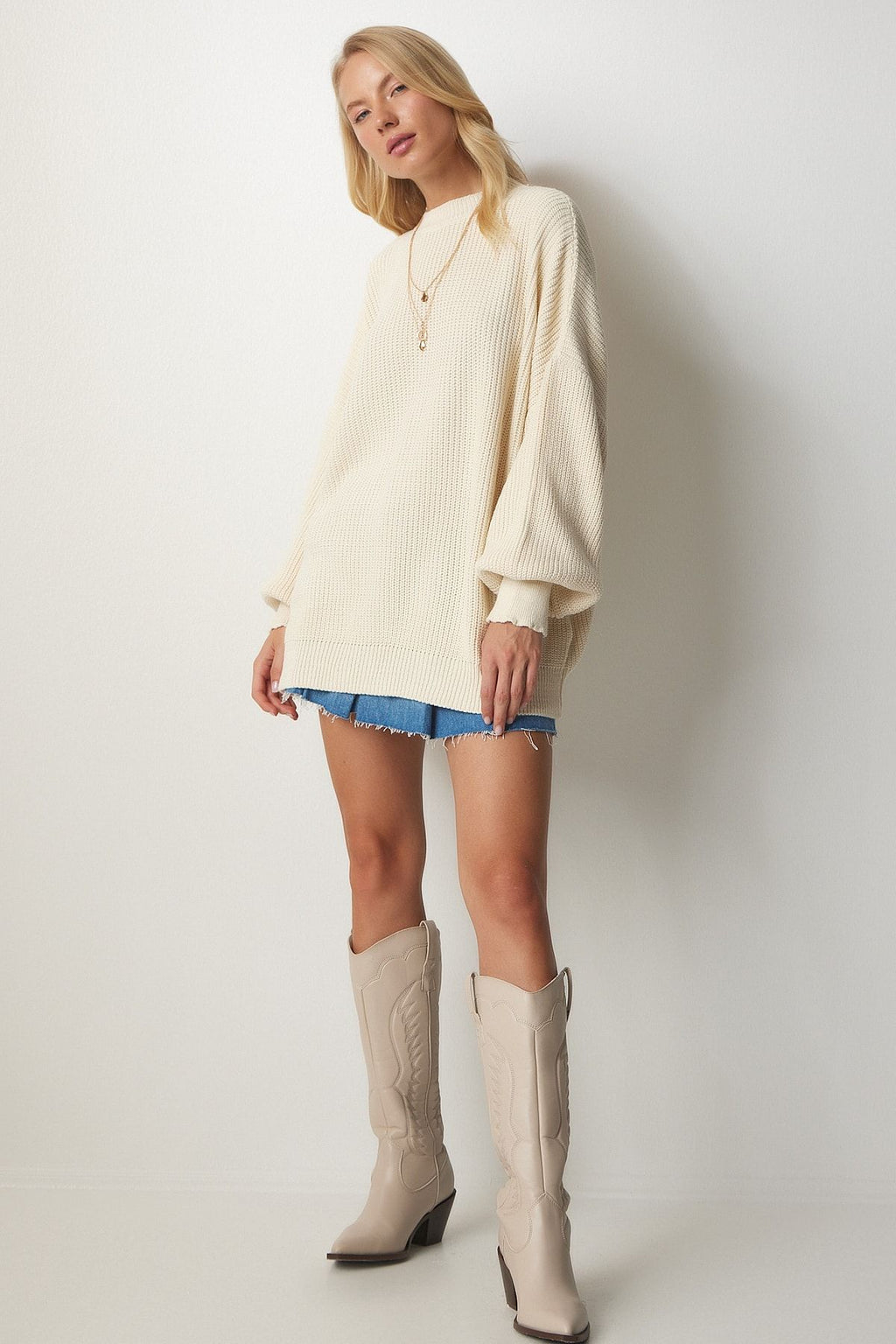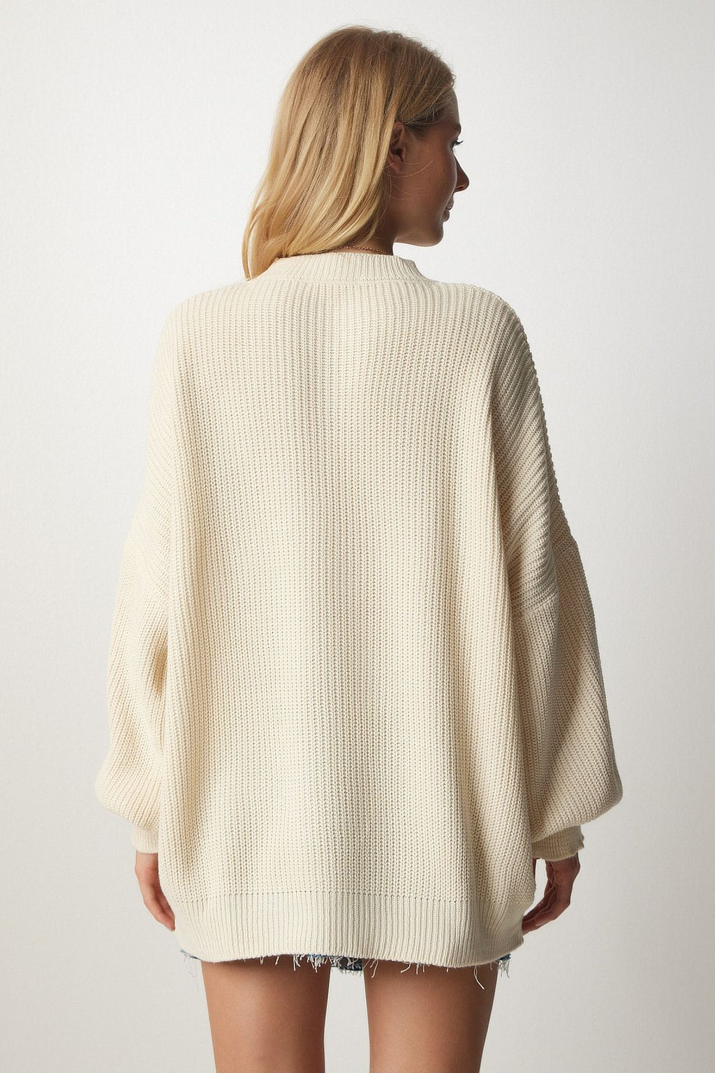 Women's Cream Oversize Basic Knitwear Sweater MX00126