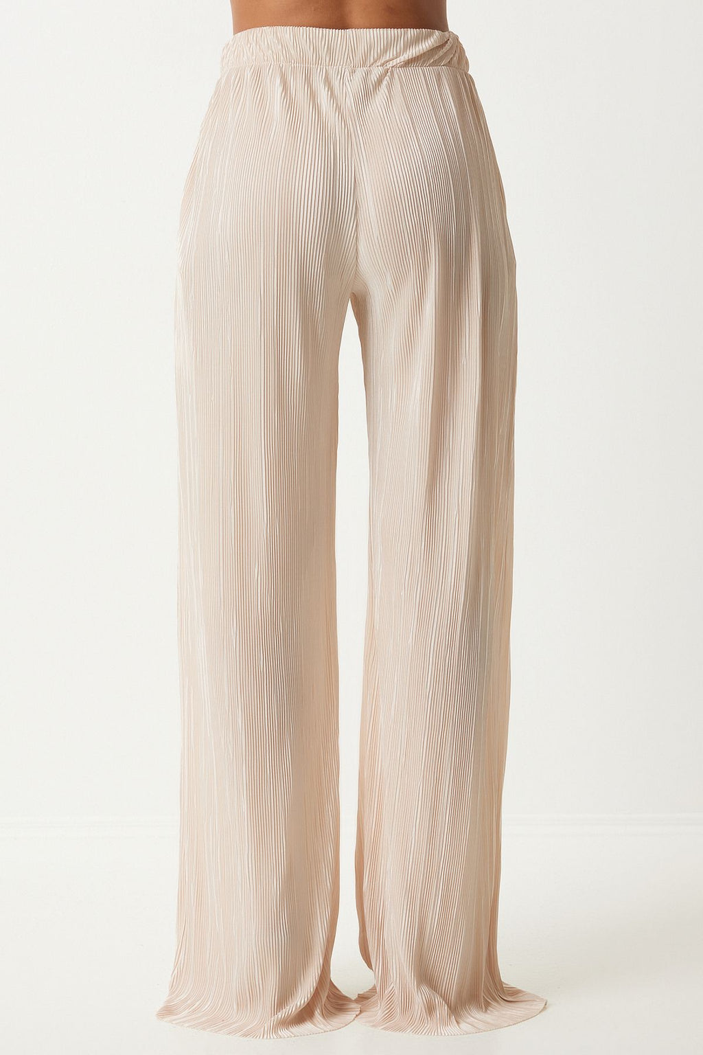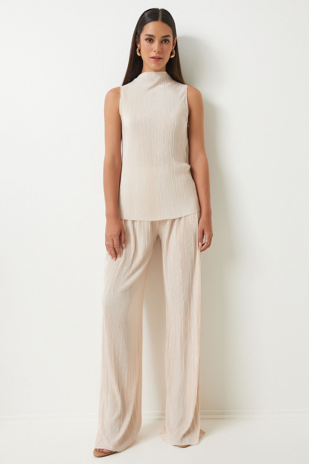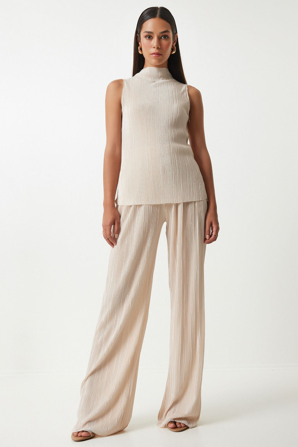 WOMEN'S CREAM PILISMED Armless Knitting Blouse Palazzo Pants Set FN03192