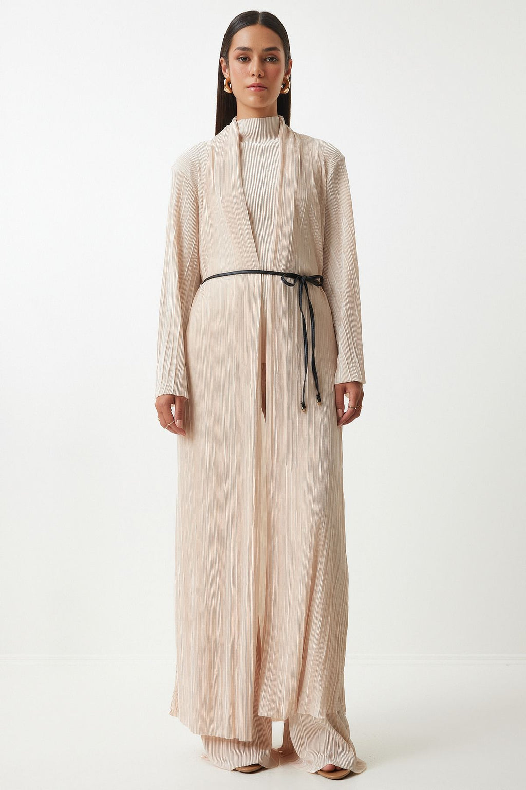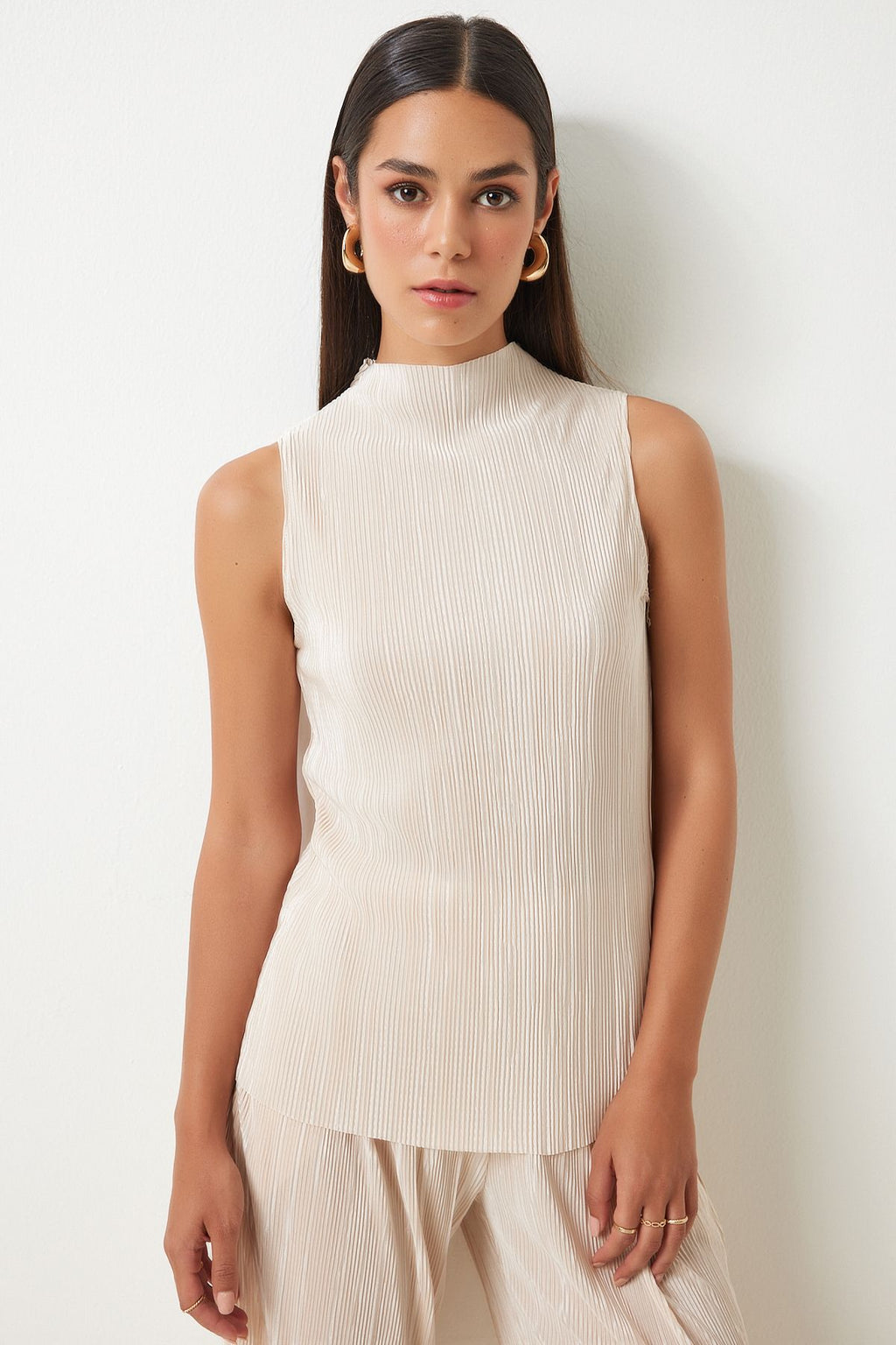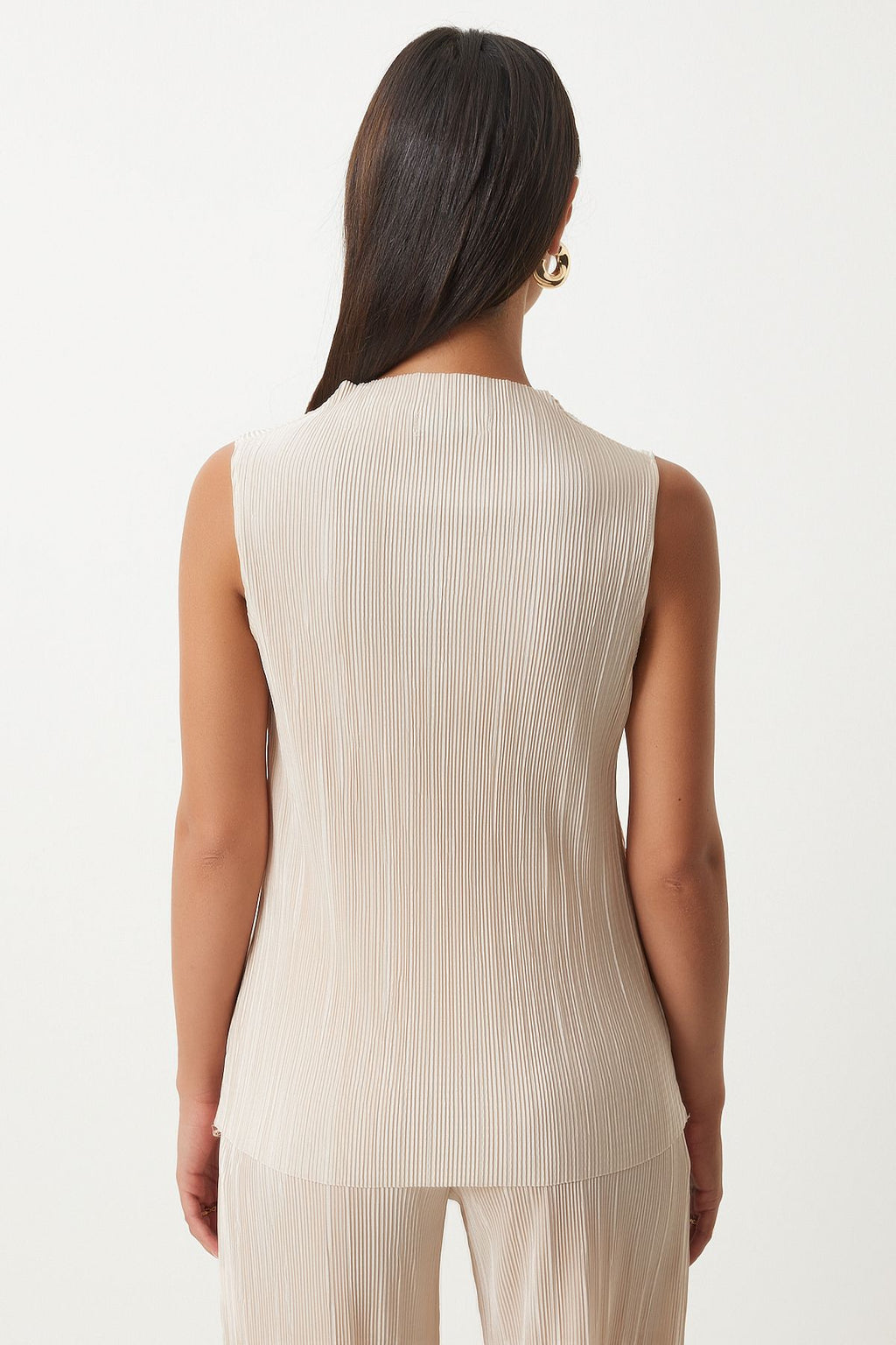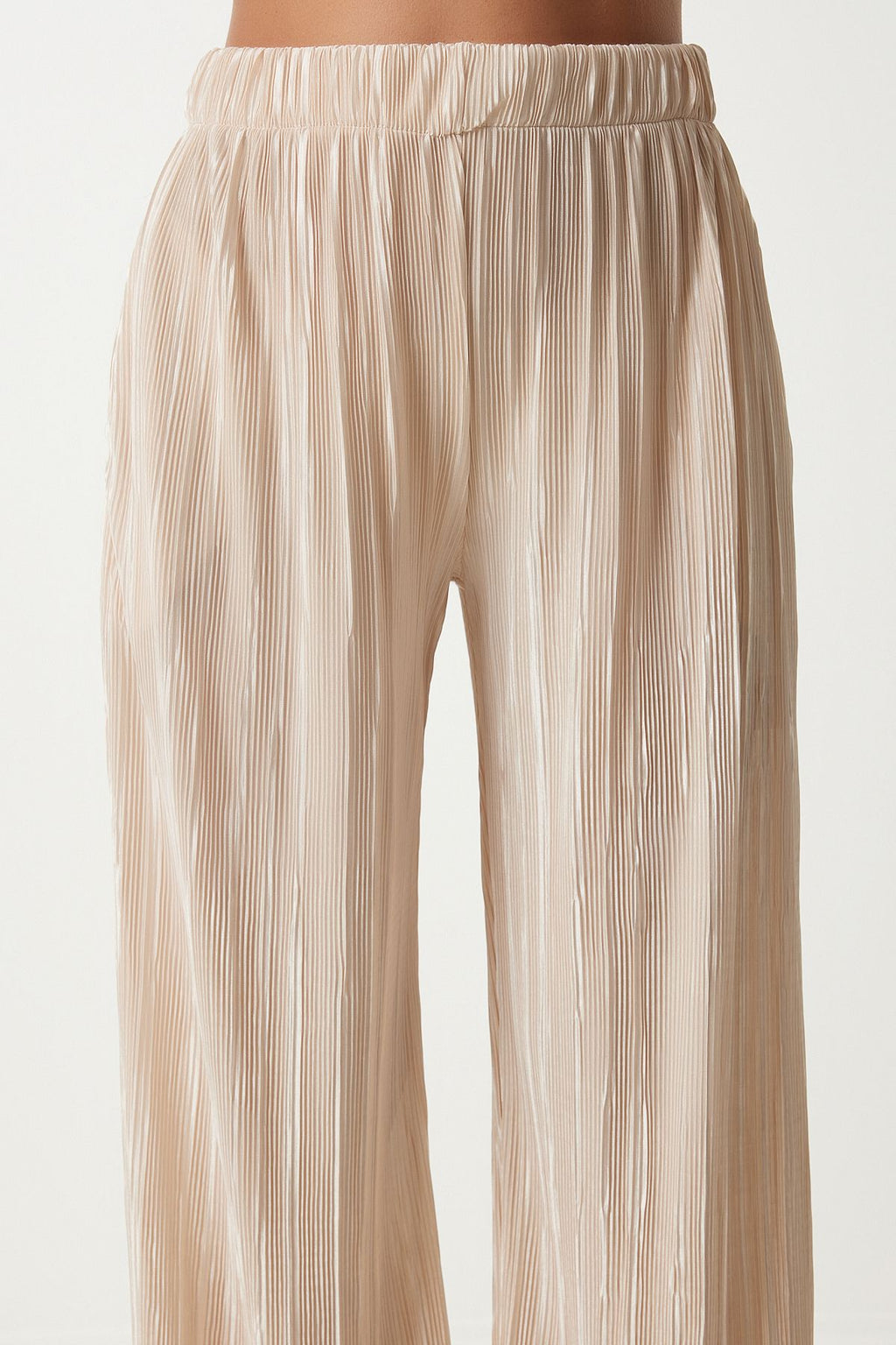 WOMEN'S CREAM PILISMED Armless Knitting Blouse Palazzo Pants Set FN03192