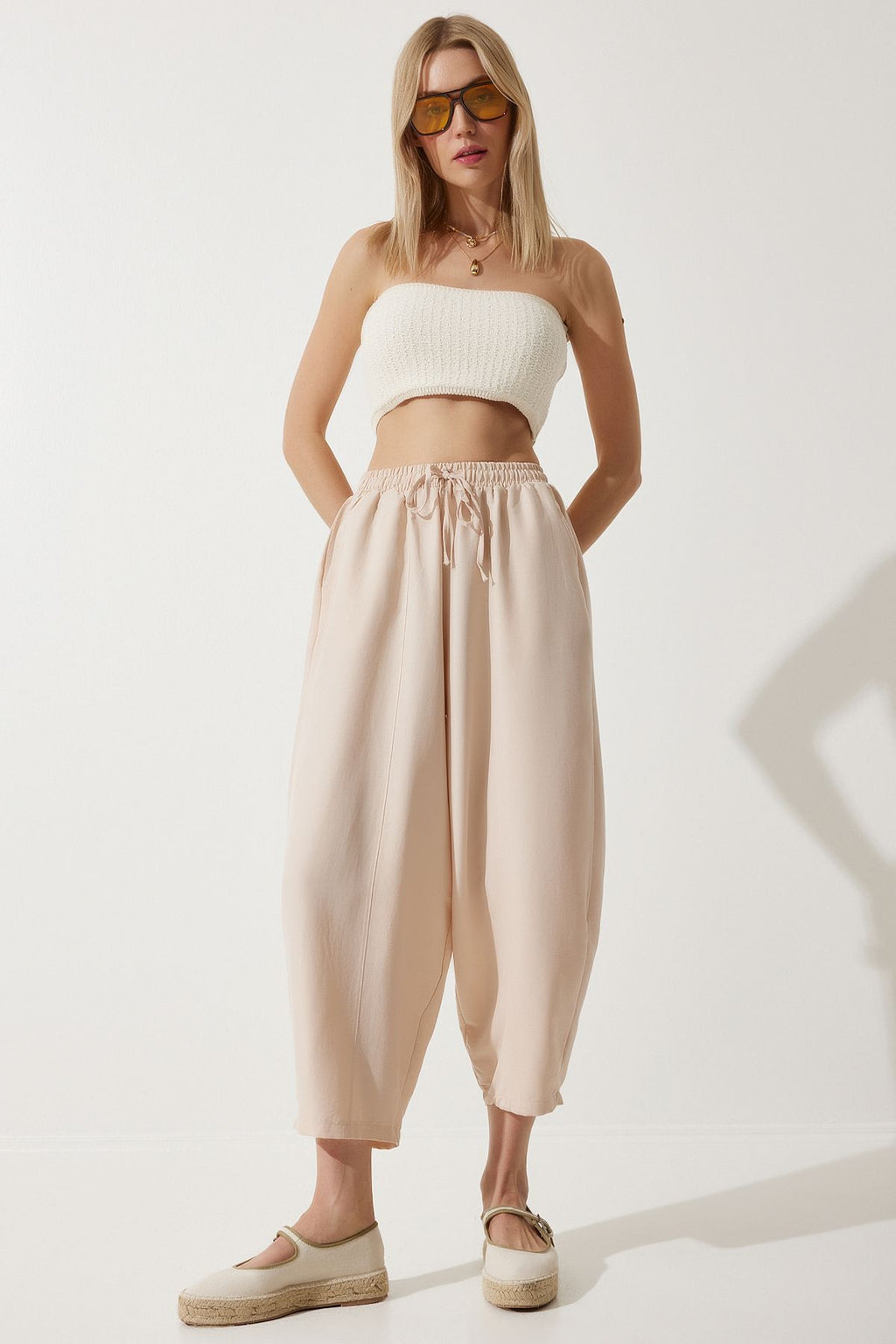 Women's Cream Pocket Linen Viscose Shalwar Pants CV00001