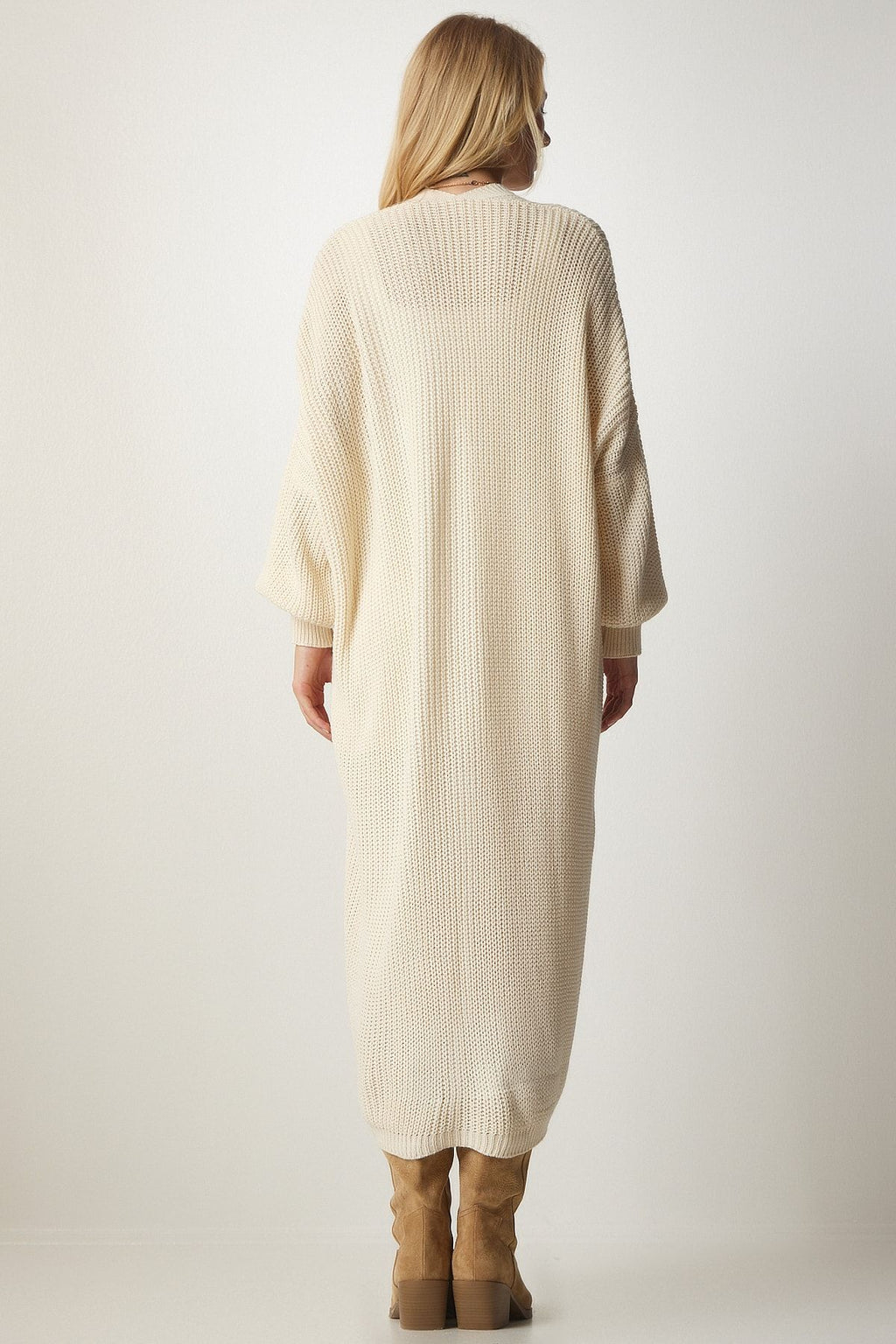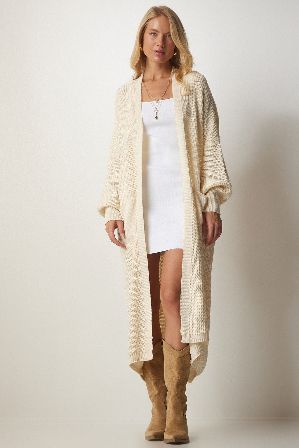 Women's Cream Pocket Long Triko Jacket Cardigan MX00106