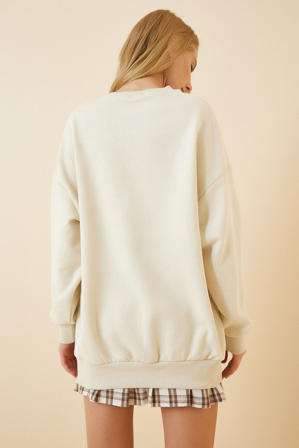 Women's Cream Printed Fine -Shadon Knitting Sweatshirt HF00390