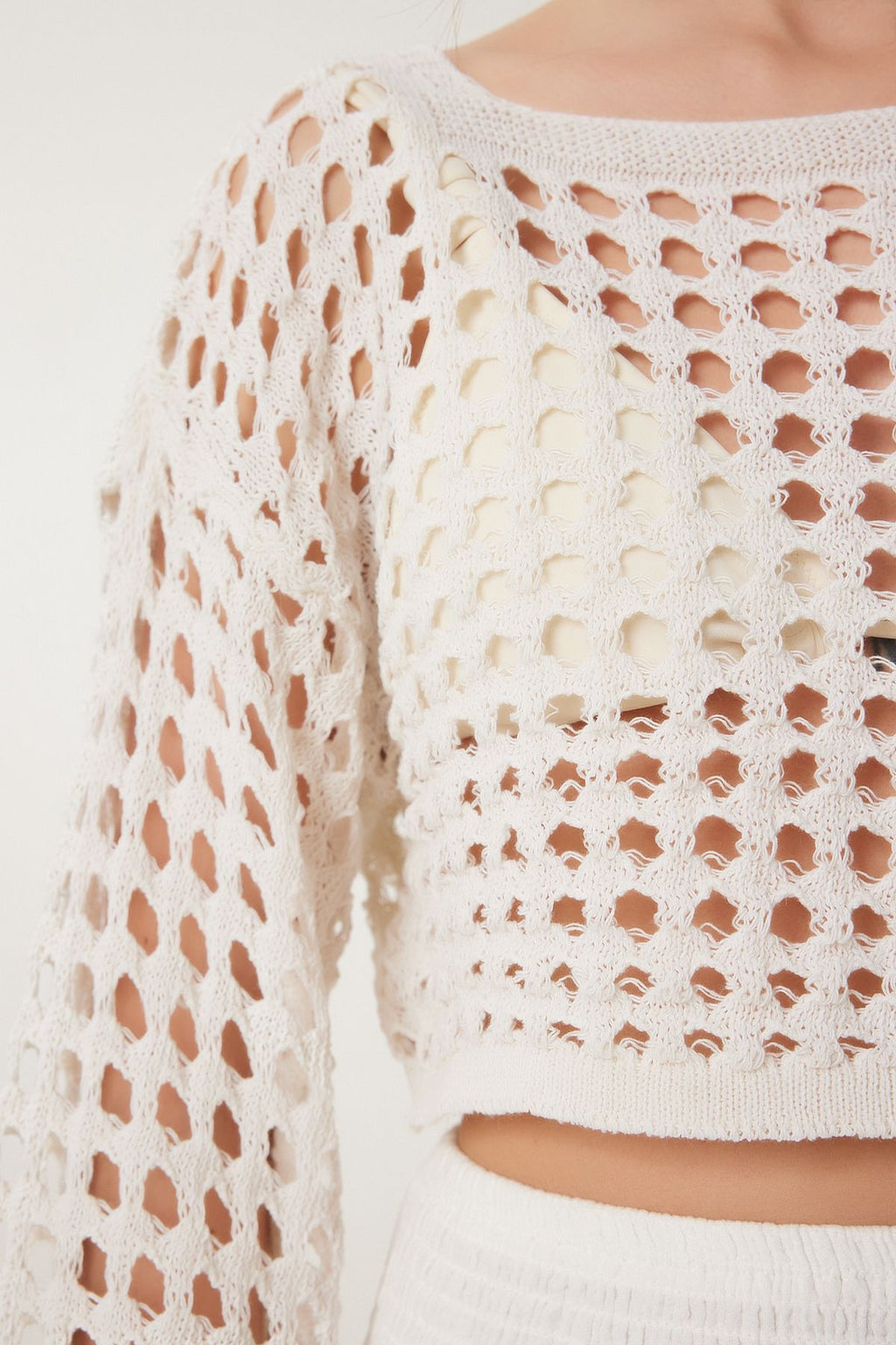Women's Cream Spanish Arm Outline Crop knitwear blouse MC00295