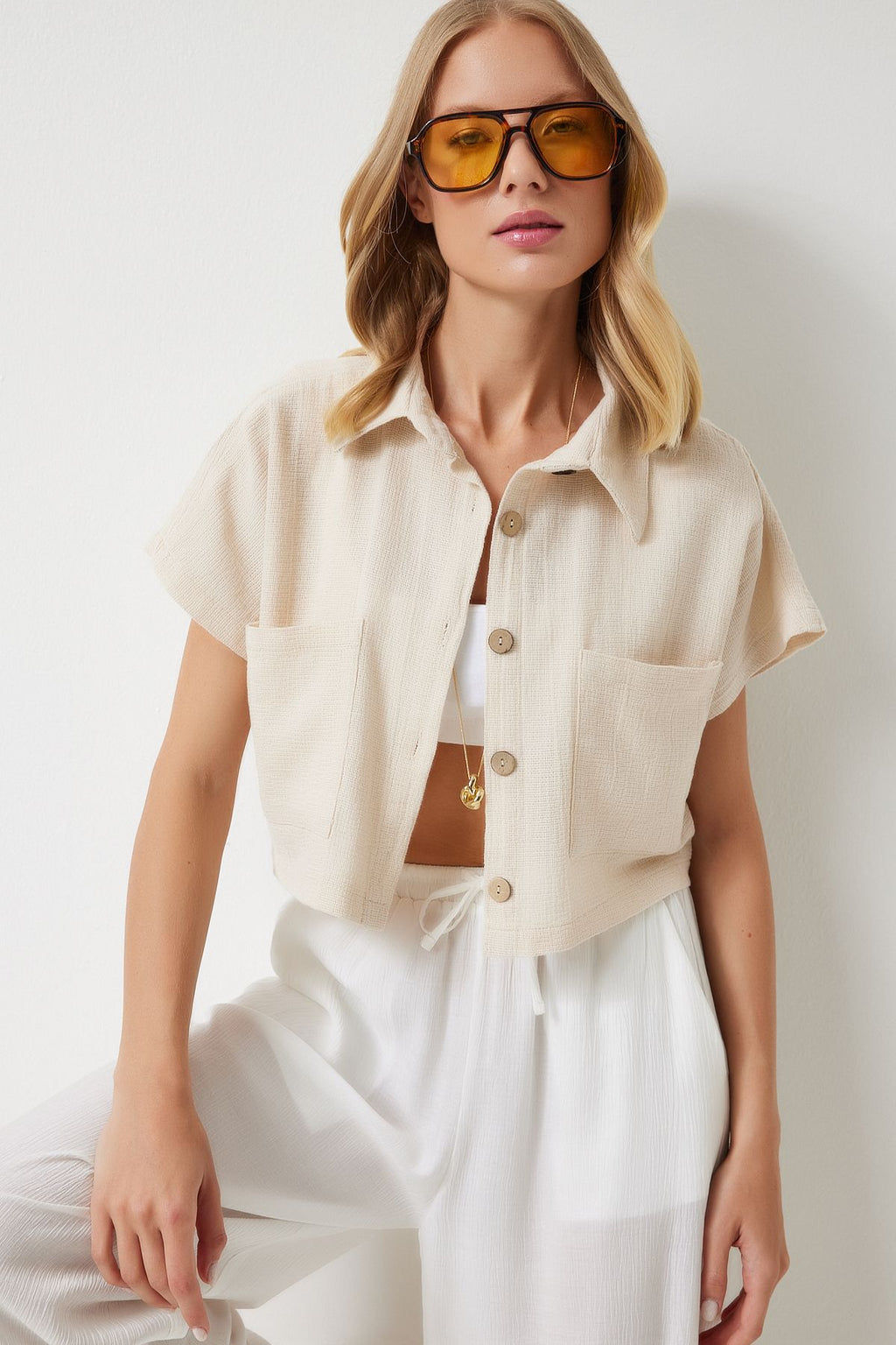 Women's Cream Wide Pocket Cottage Summer Bolero Jacket GP00004