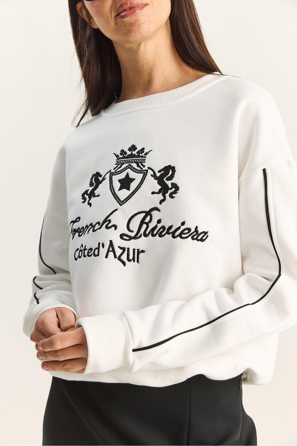 Women's Crew Neck Embroidered Three Thread Raised Sweatshirt 60601049
