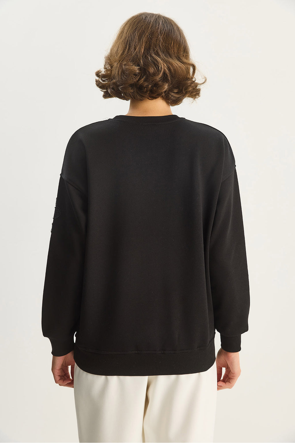 Women's Crew Neck Floral Embroidery and Beaded Sweatshirt 1562 60283633
