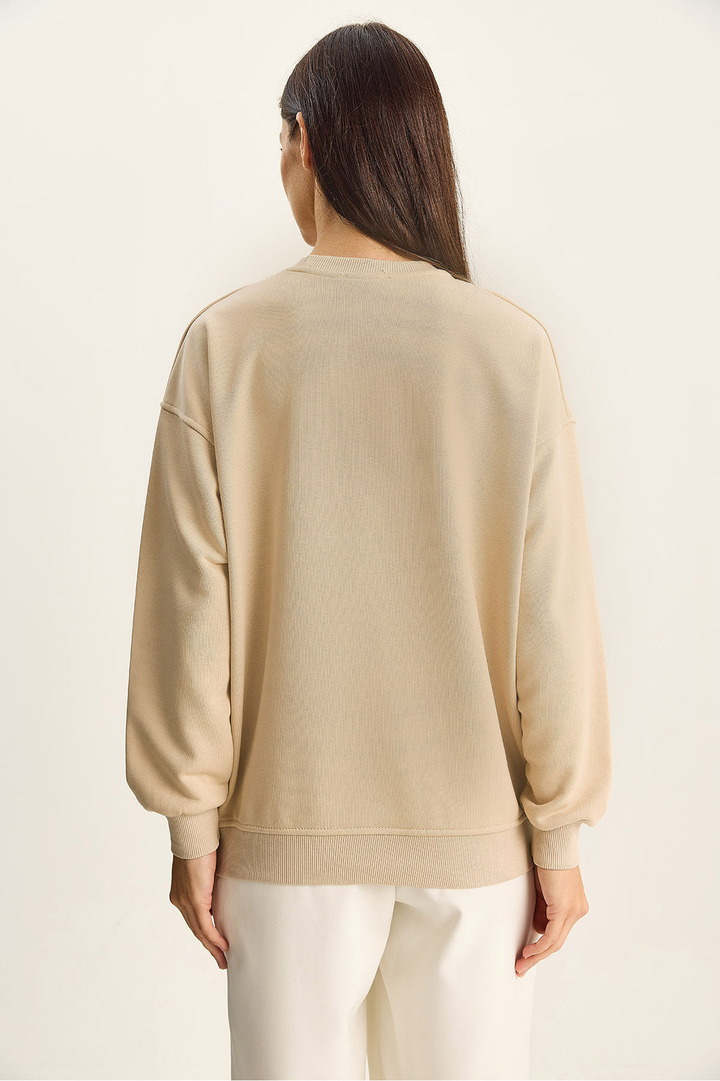 Women's Crew Neck Flower Bead Embroidered Relaxed Sweatshirt 1572 60283809