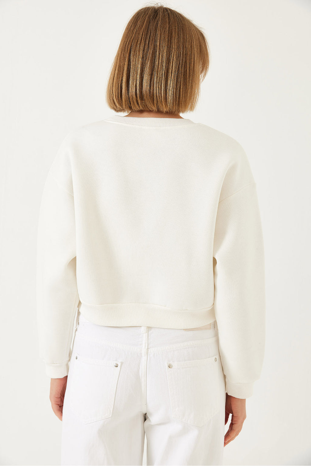 Women's Crew Neck Front Pearl Embroidered Three Thread Raised Sweatshirt 60601041