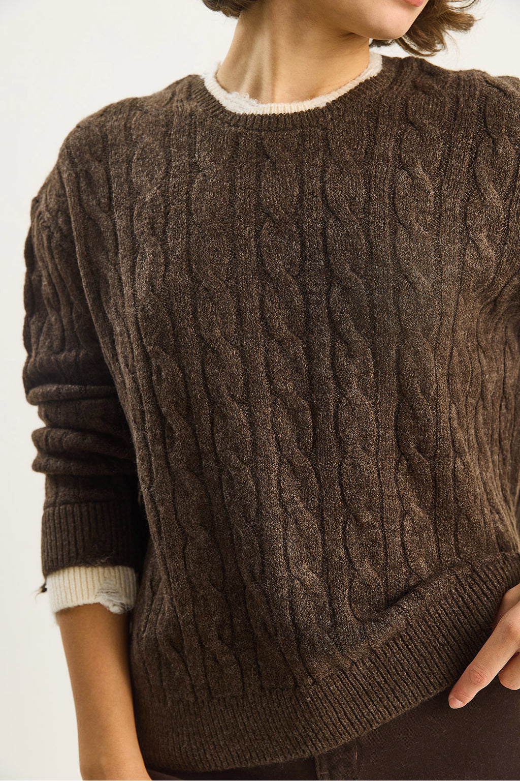 Women's Crew Neck Hair Braid Patterned Ripped Cuff Detailed Knitwear Sweater TK251087 60283599