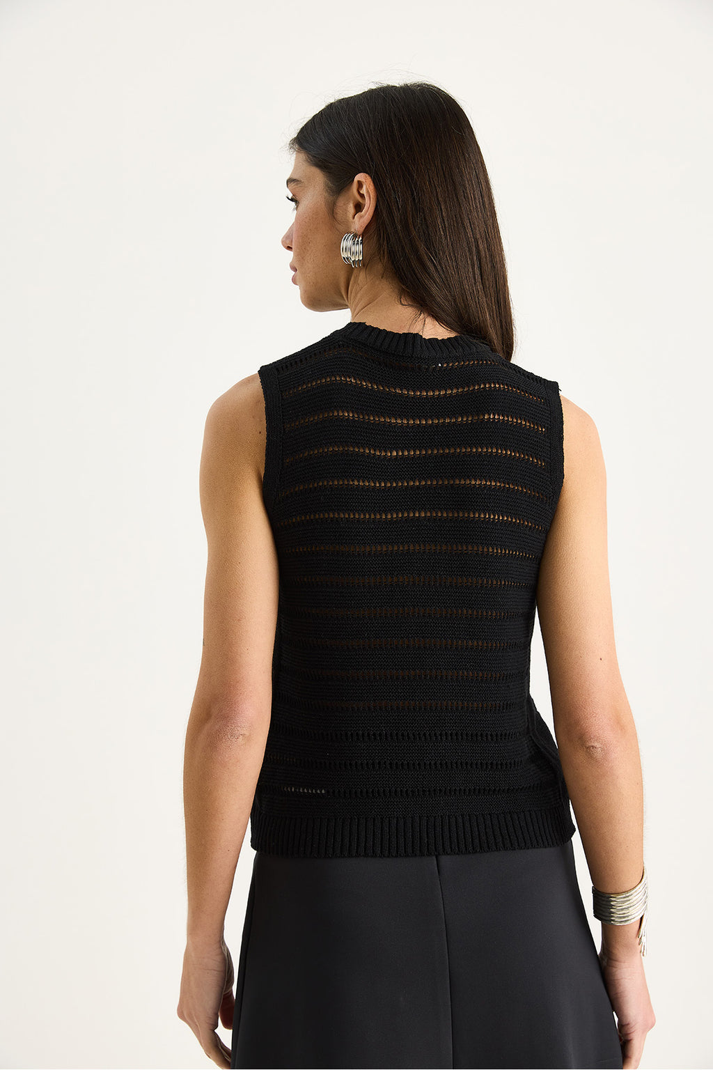 Women's Crew Neck Openwork Basic Knitwear Blouse 20258009