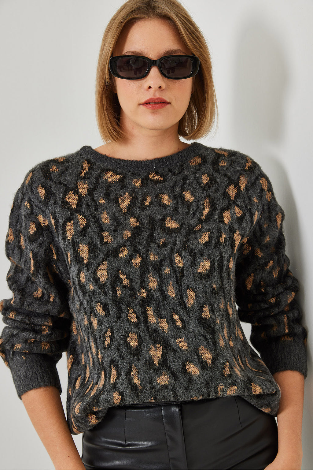 Women's Crew Neck Patterned Knitwear Sweater 241191 60251991