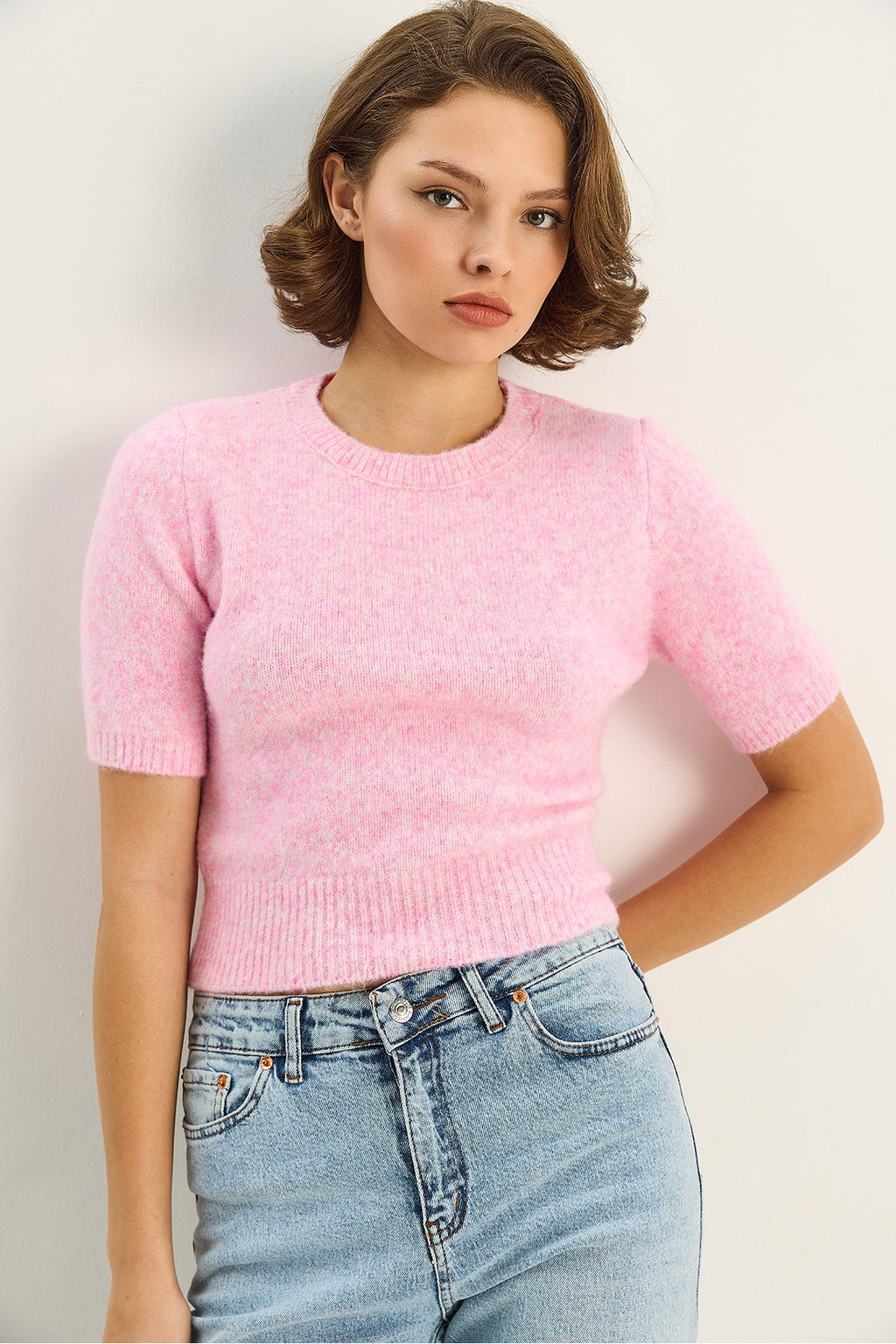 Women's Crew Neck Short Sleeve Basic Knitwear Sweater 9037 60283747