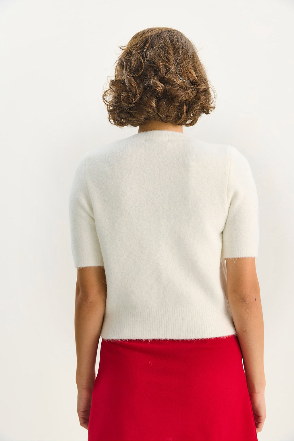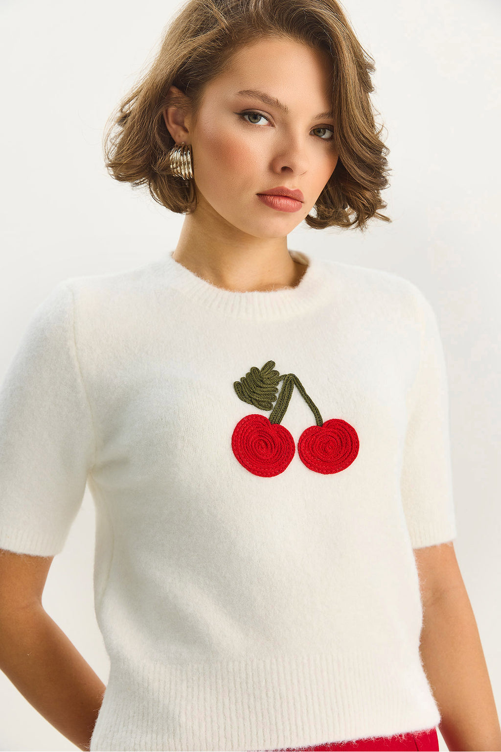 Women's Crew Neck Short Sleeve Cherry Knit Embroidery Knitwear Blouse 5079 60283588