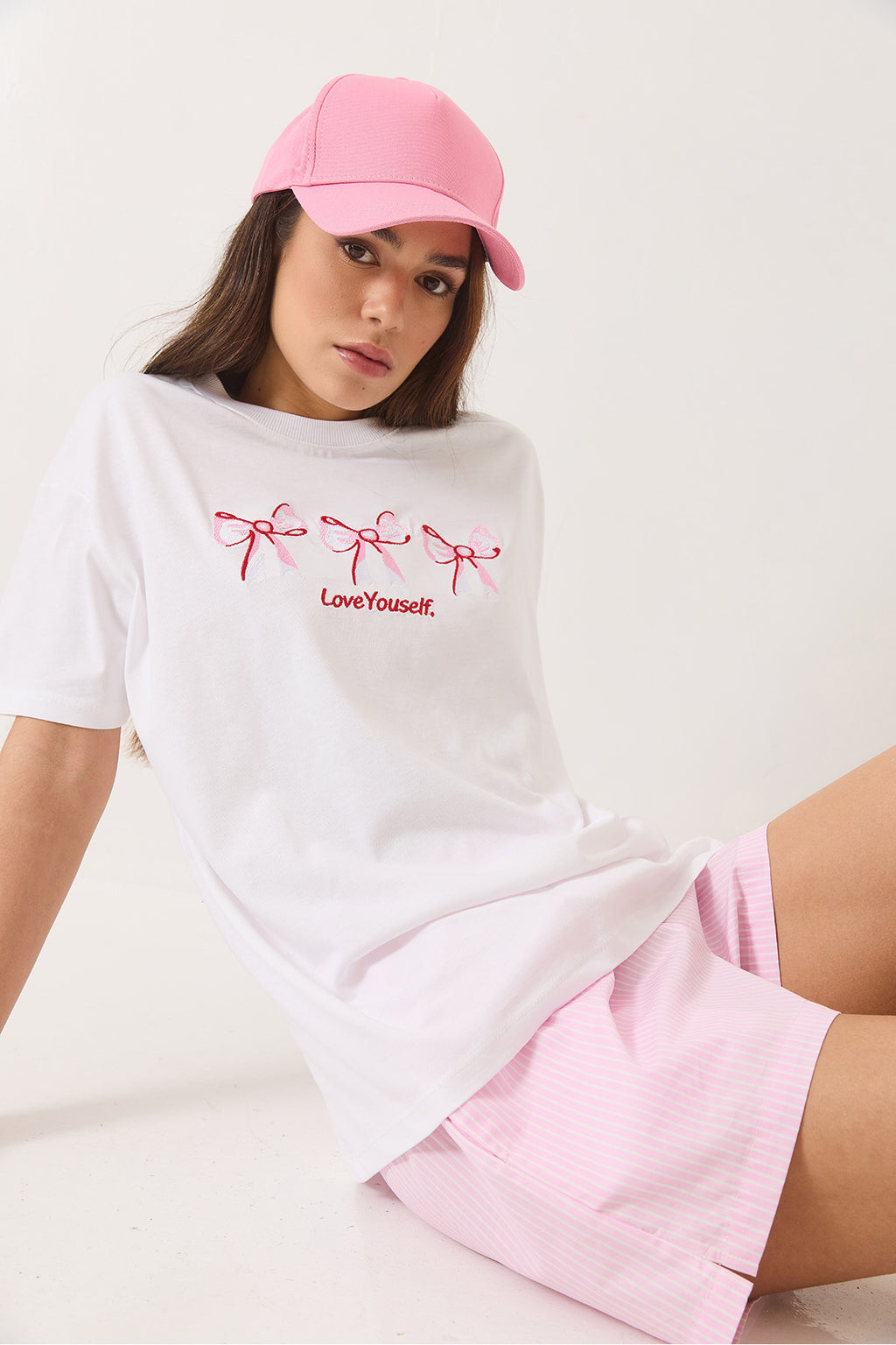 Women's Crew Neck Short Sleeve Embroidered T-Shirt 60602023