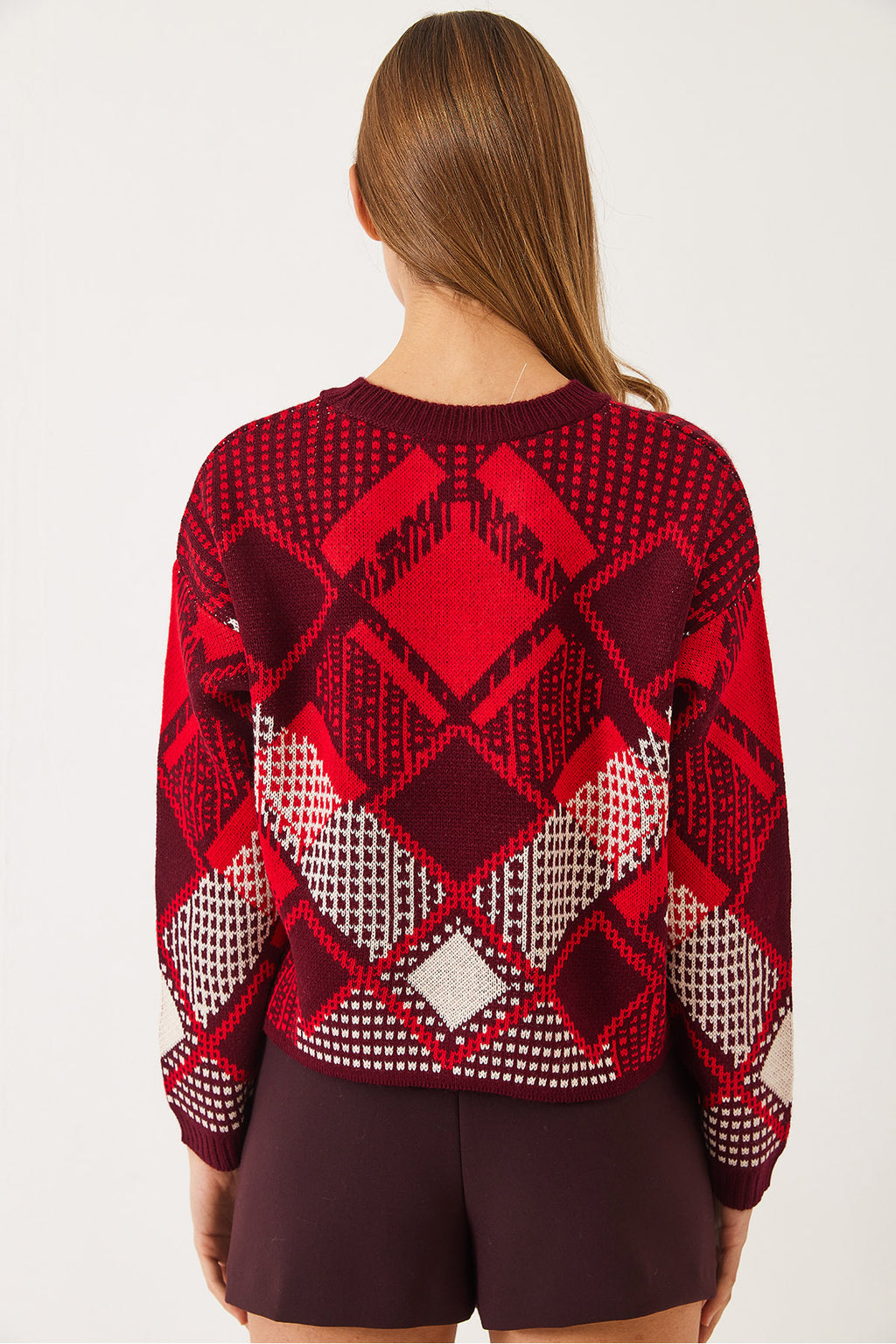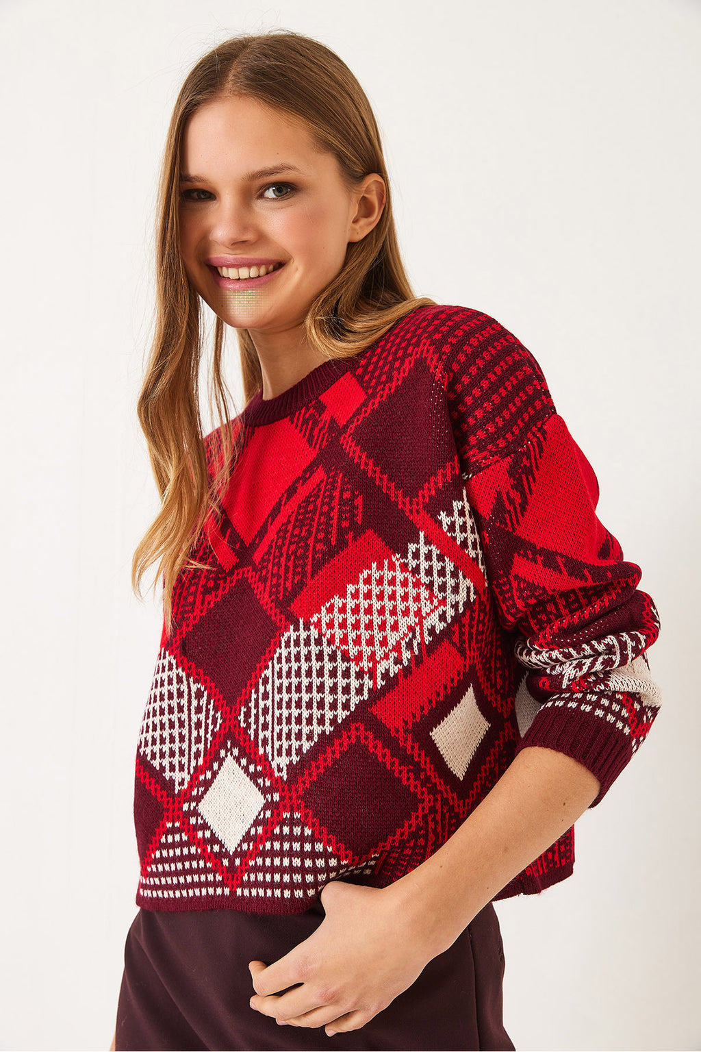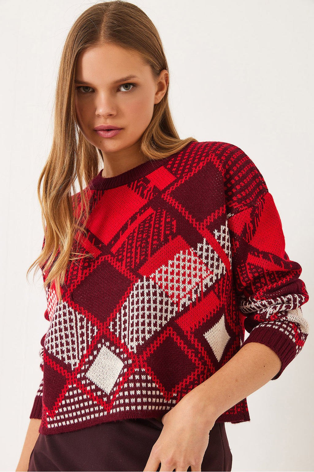 Women's Diamond Patterned Jacquard Knitwear Sweater 20246928