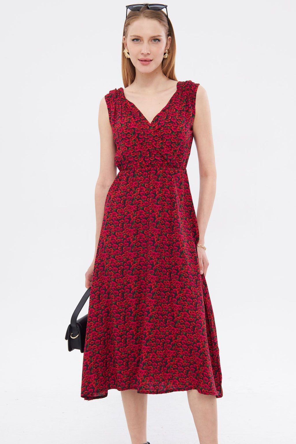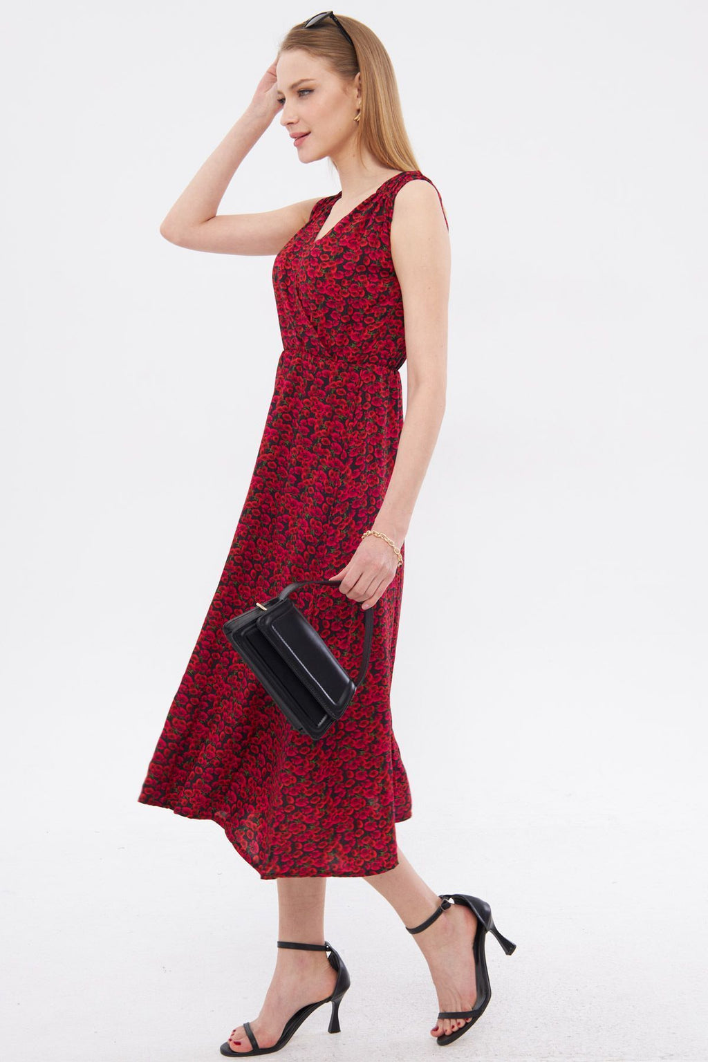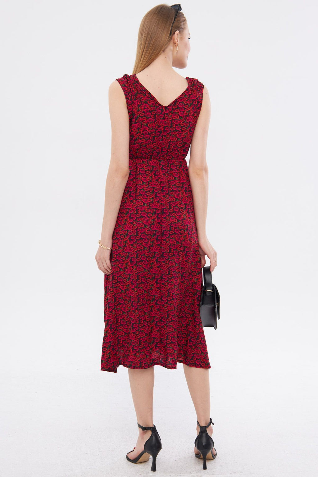 Women's Fuchsia Patterned Waist and Shooter Cruve Cruve Backet Midi Boy Dress ARM-24Y001052